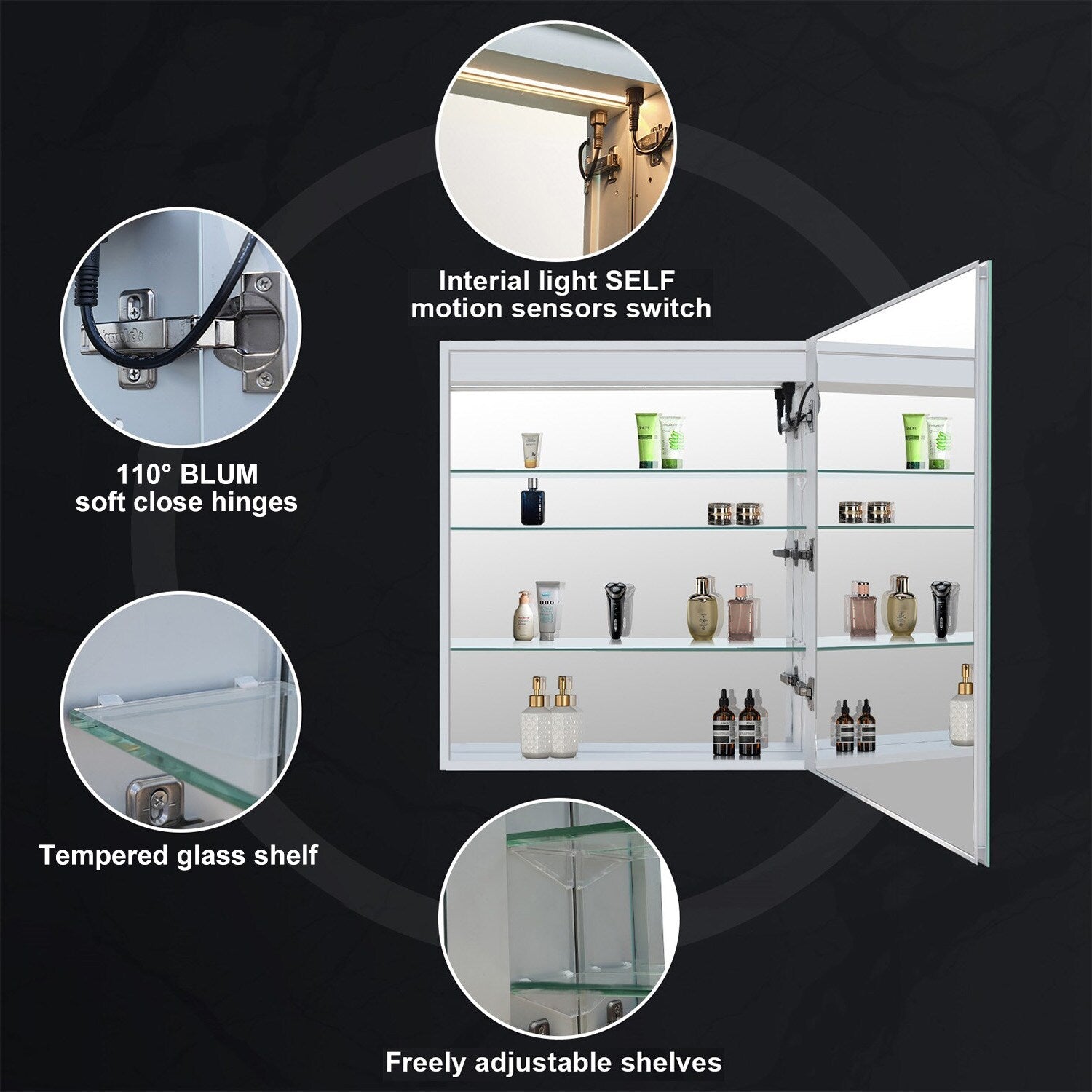 • Soft-Close Features: Adjustable glass shelves housed behind precision-engineered soft-close doors.