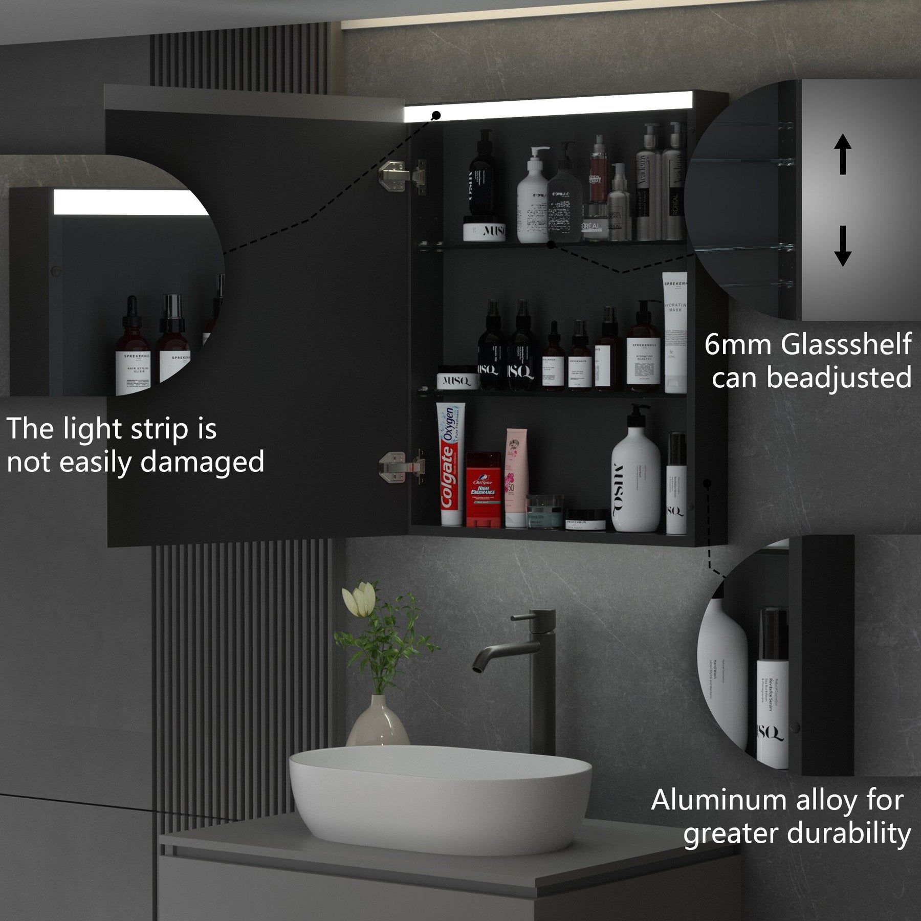 Elevate your bathroom's functionality with the Forclover Lighted LED Medicine Cabinet. Crafted from durable aluminum and featuring bright LED lighting, this medicine cabinet not only adds modern elegance but also enhances practical storage with its adjustable shelves.