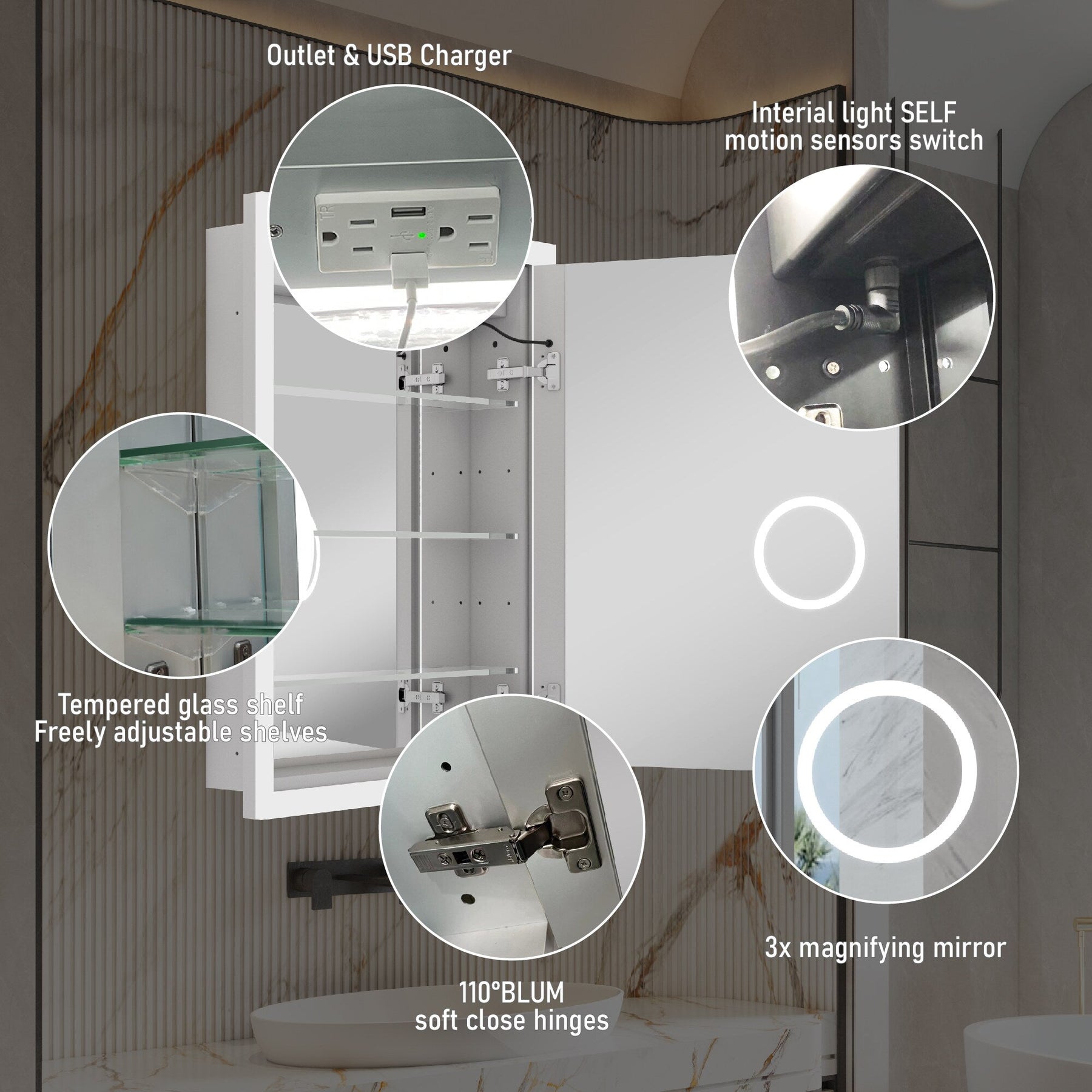 Forclover 24-in x 32-in Lighted LED Fog Free Surface/Recessed Mount Silver Mirrored Soft Close Medicine Cabinet with Outlet