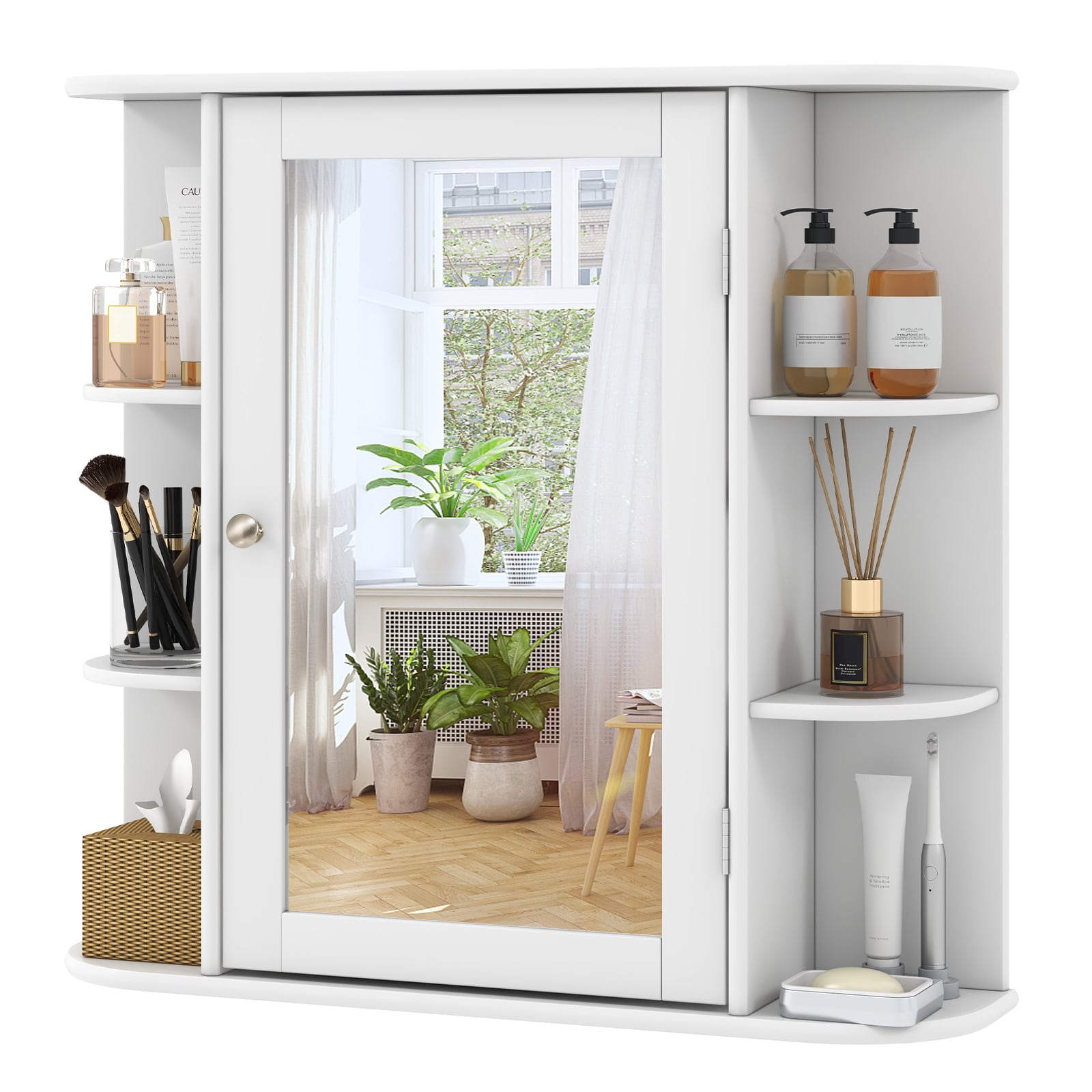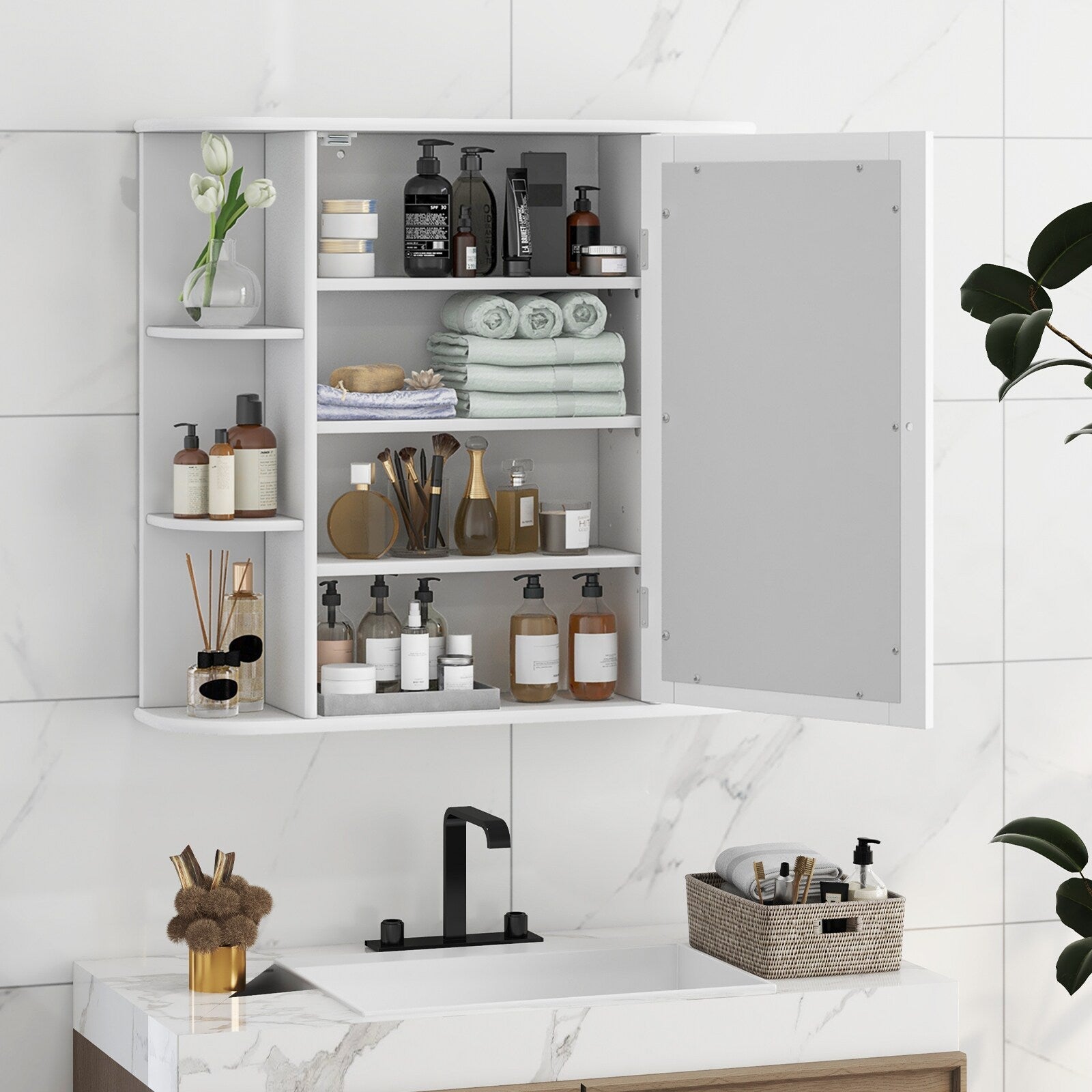 Forclover 26-in x 25-in Surface Mount White Mirrored Medicine Cabinet