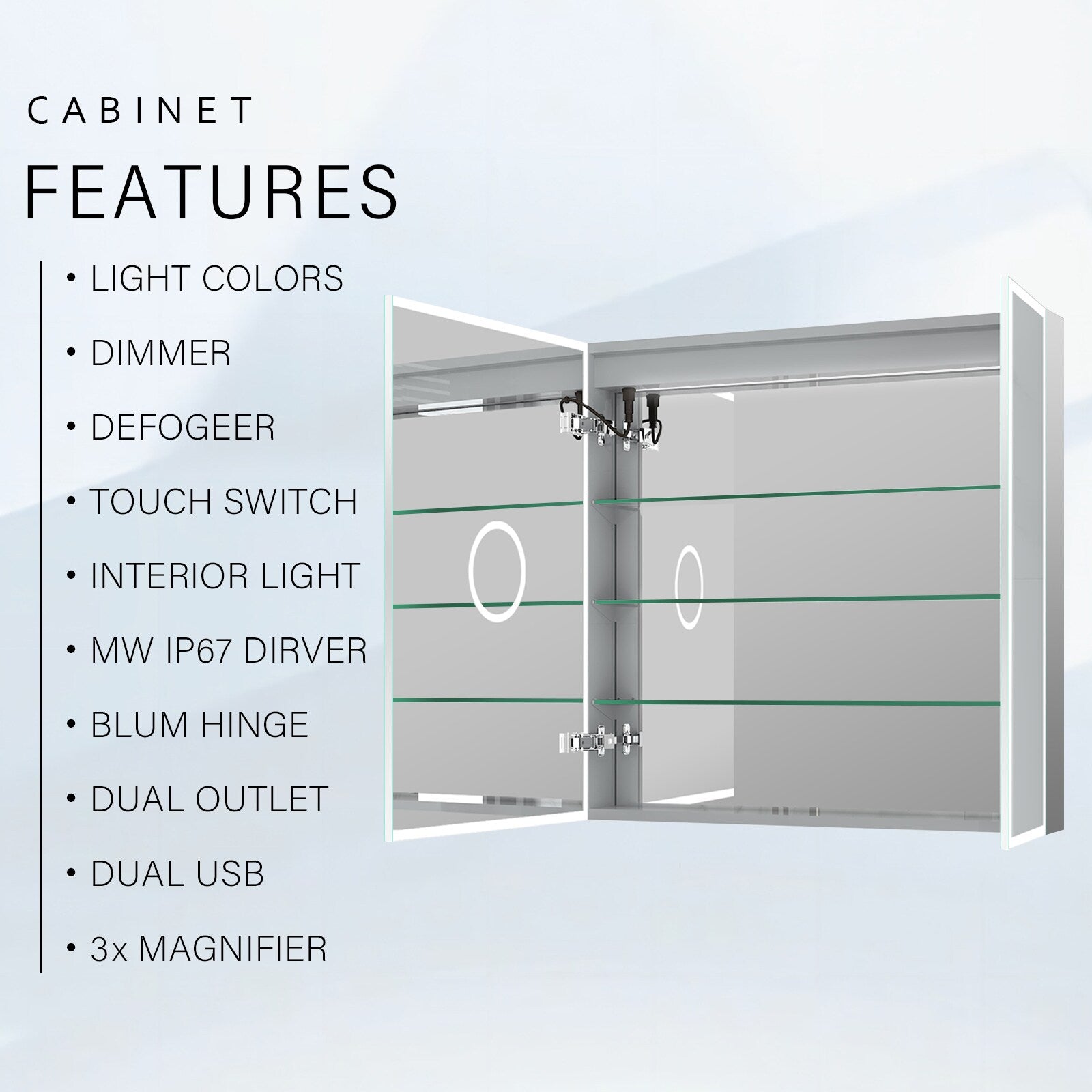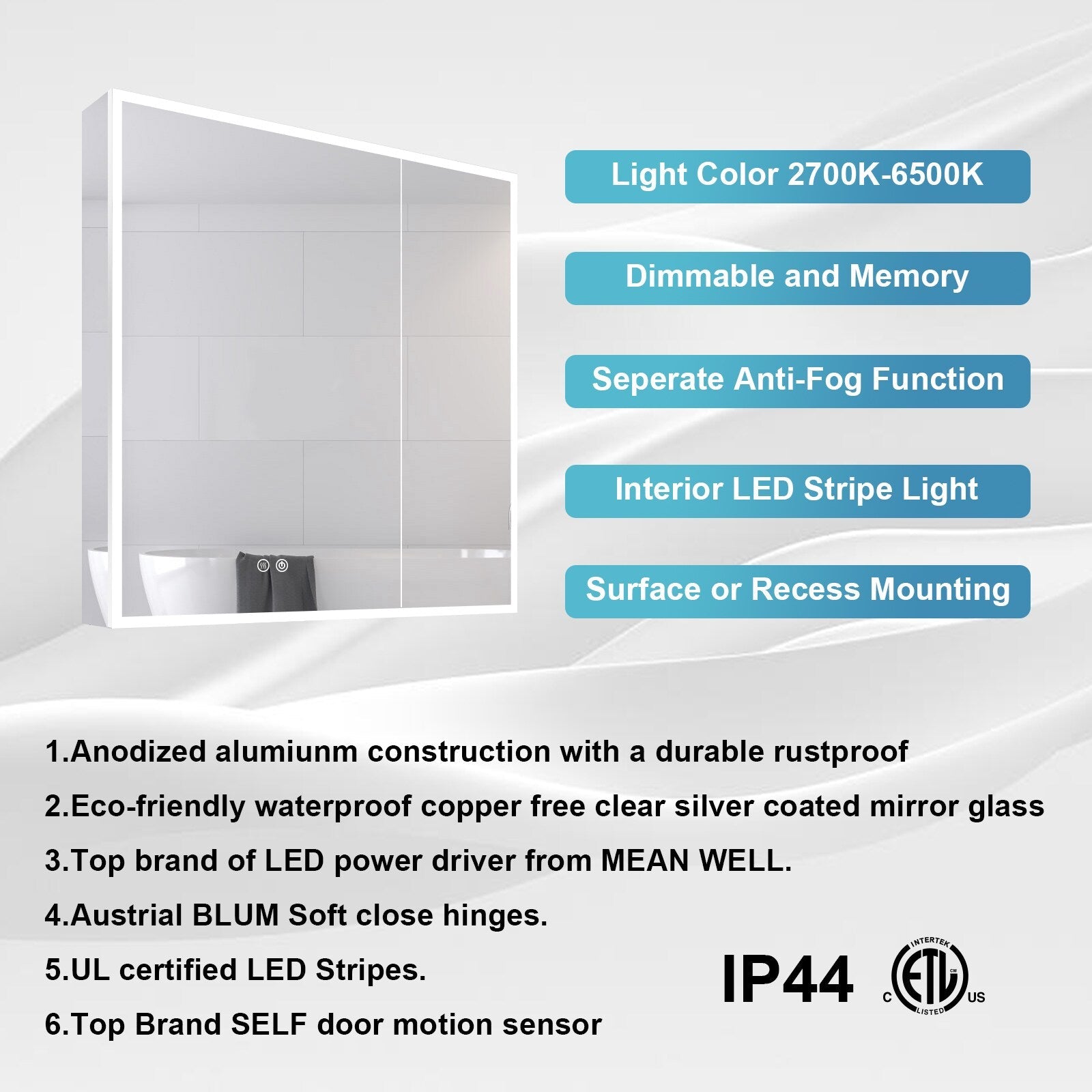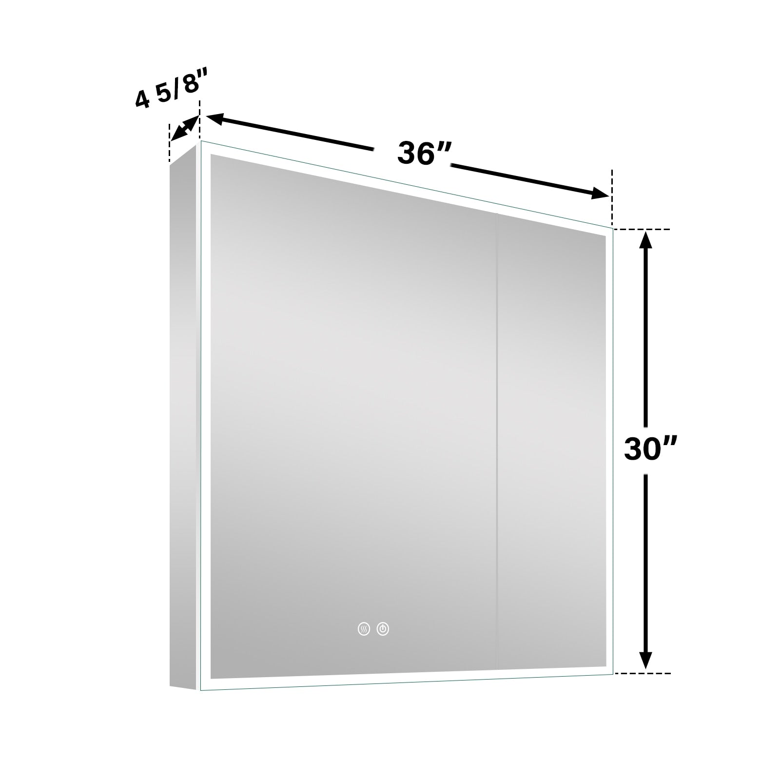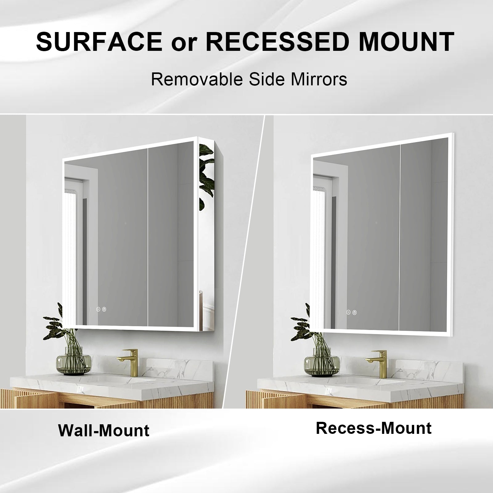 Forclover 36-in x 30-in Lighted LED Fog Free Surface/Recessed Mount Silver Mirrored Soft Close Medicine Cabinet with Outlet
