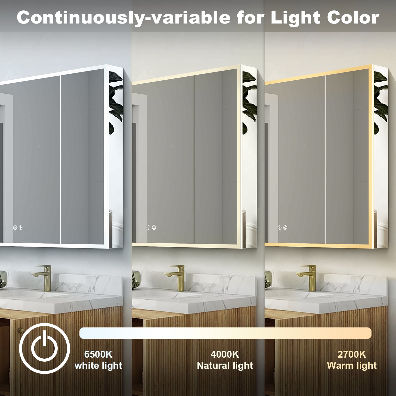 Elevate your bathroom with the Forclover LED Medicine Cabinet, featuring fog-free technology and customizable lighting from 2700K to 6500K. Its sleek design includes convenient outlets, a magnifier for precision grooming, and adjustable storage, making it a versatile addition to any bathroom.