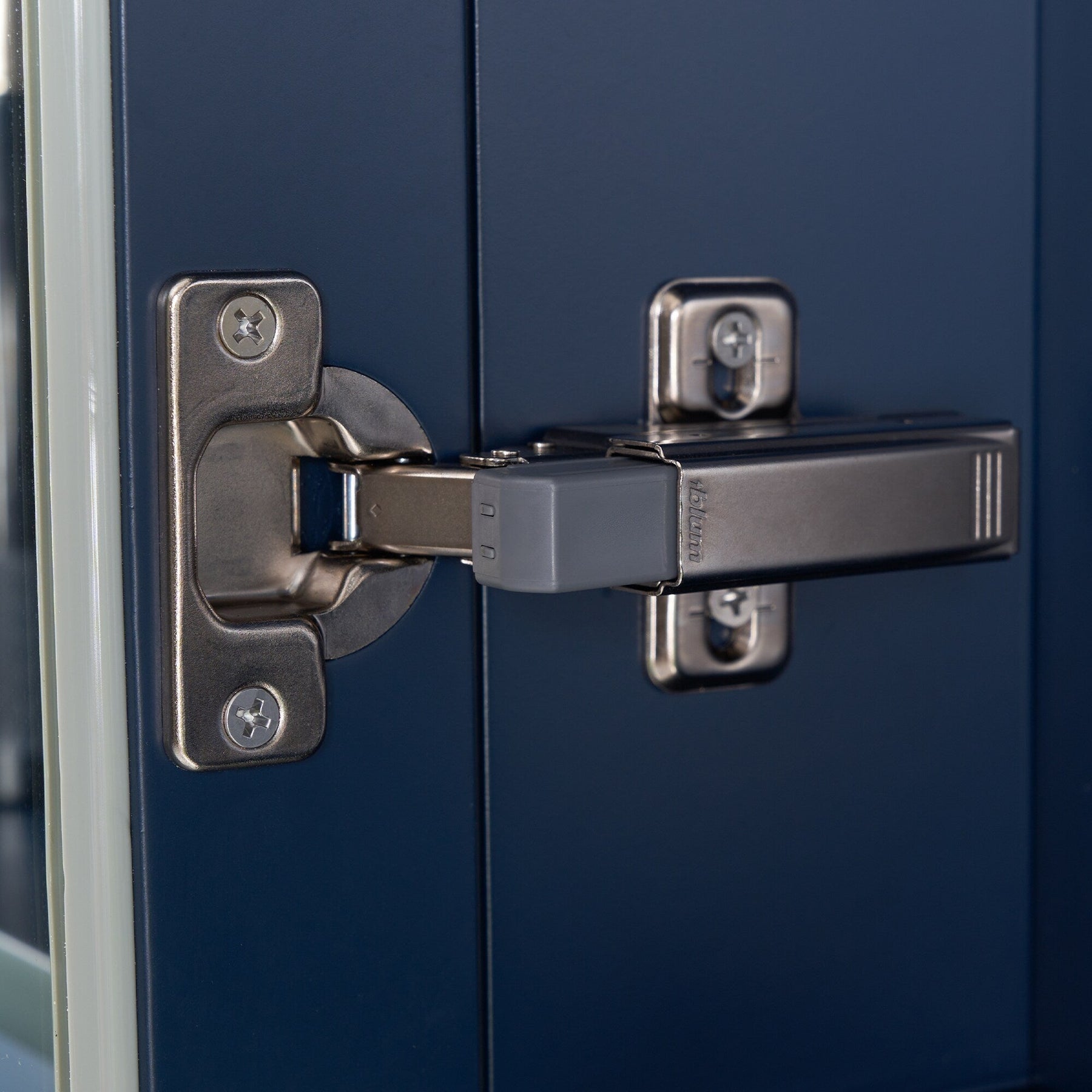 Upgrade your bathroom space with the Forclover 42-in x 30-in Navy Mirrored Soft Close Medicine Cabinet. This stylish and functional cabinet features a soft-close door with Austria BLUM hinges for seamless operation. Elegant metal alloy hardware with porcelain accents adds a luxurious touch to any décor.