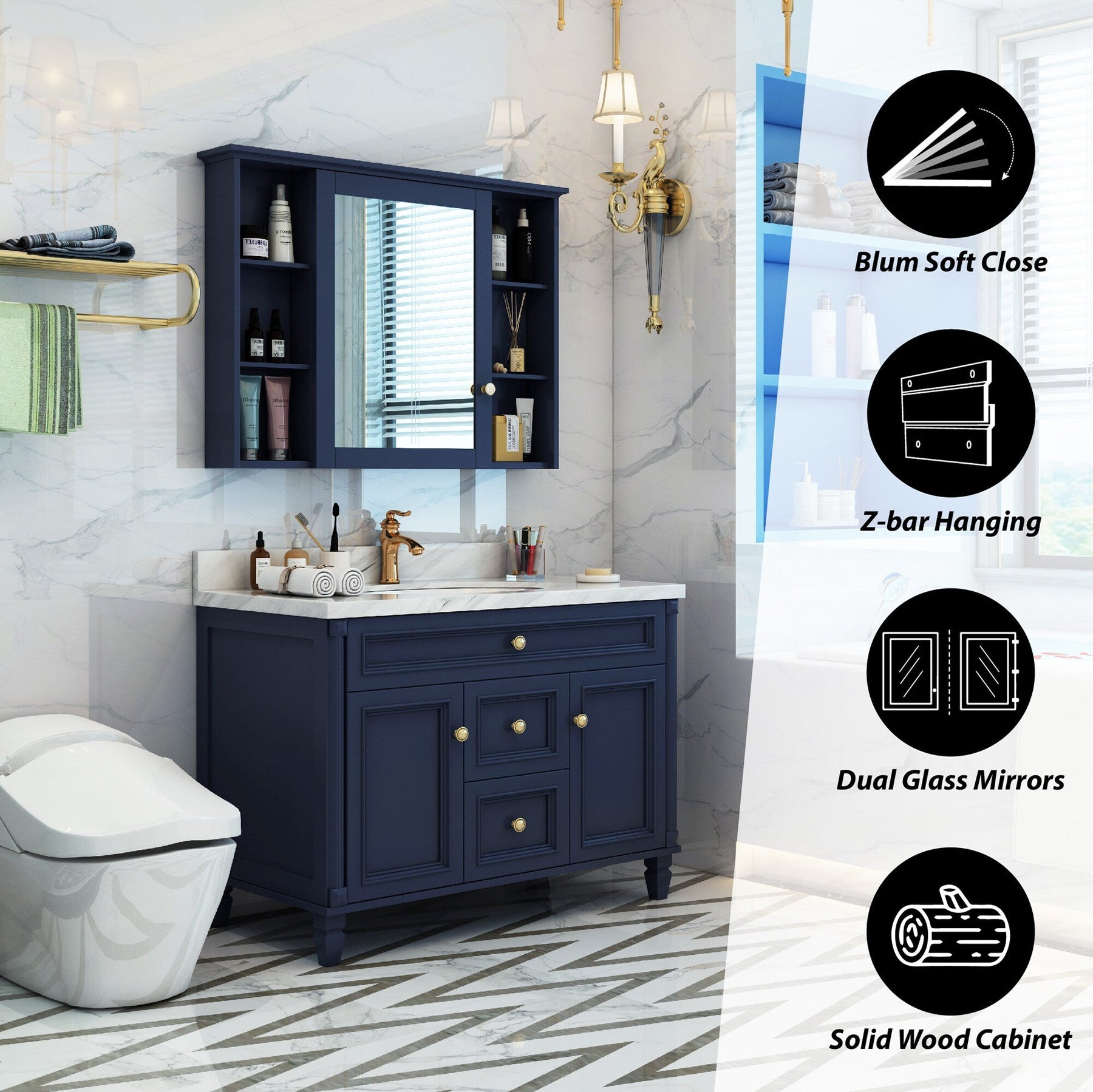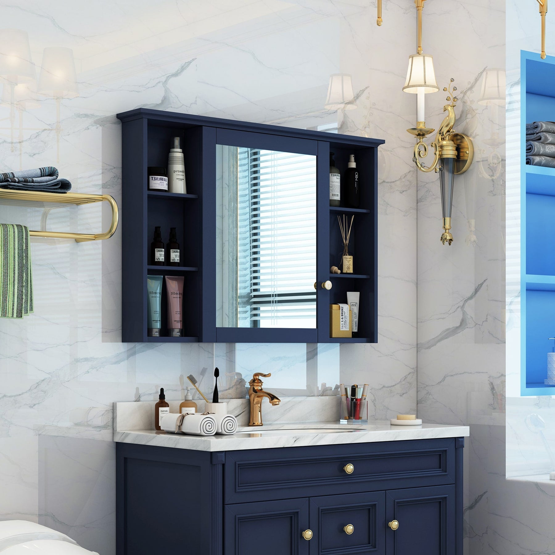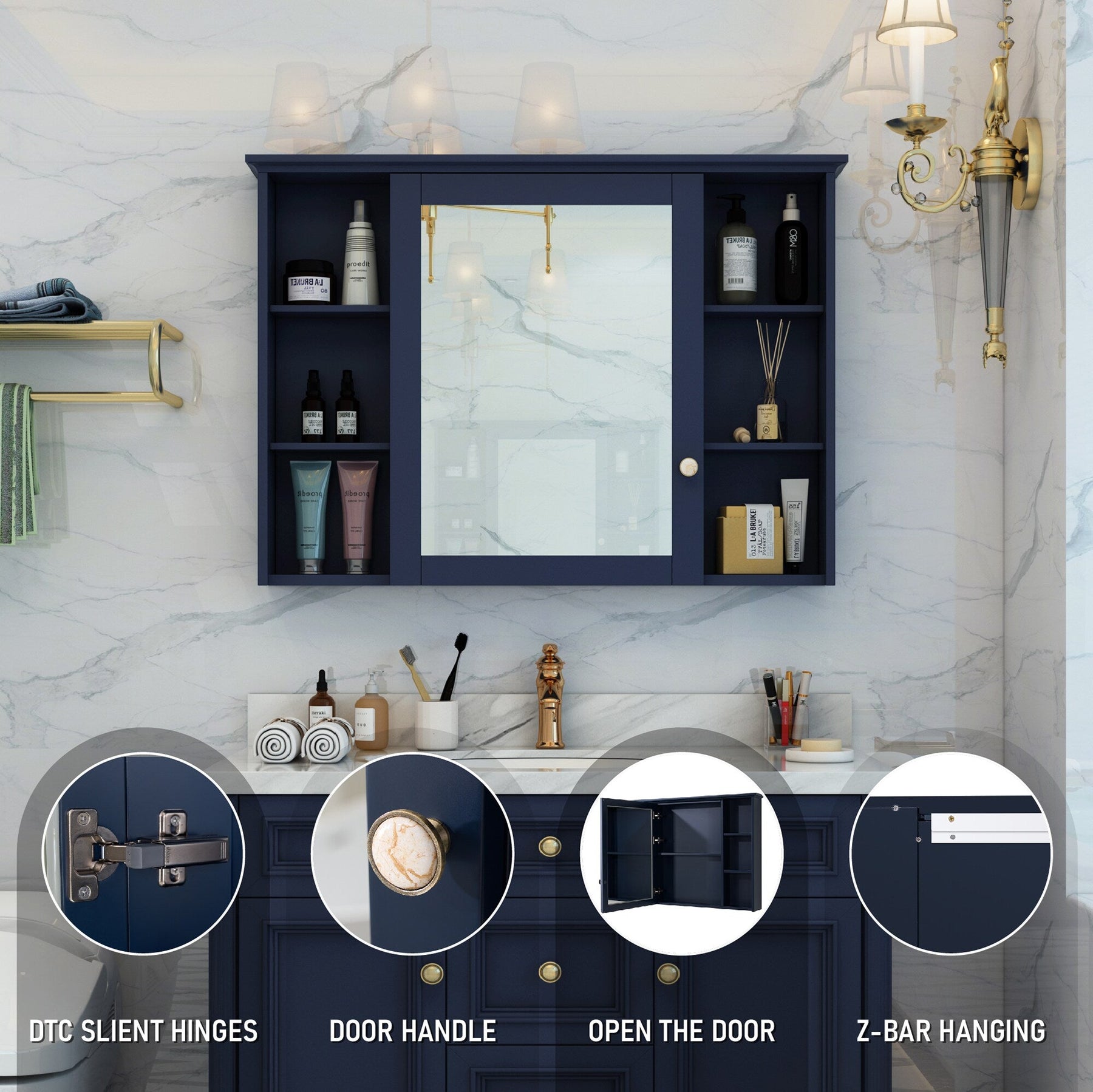 Forclover 42-in x 30-in Surface Mount Navy Mirrored Soft Close Medicine Cabinet