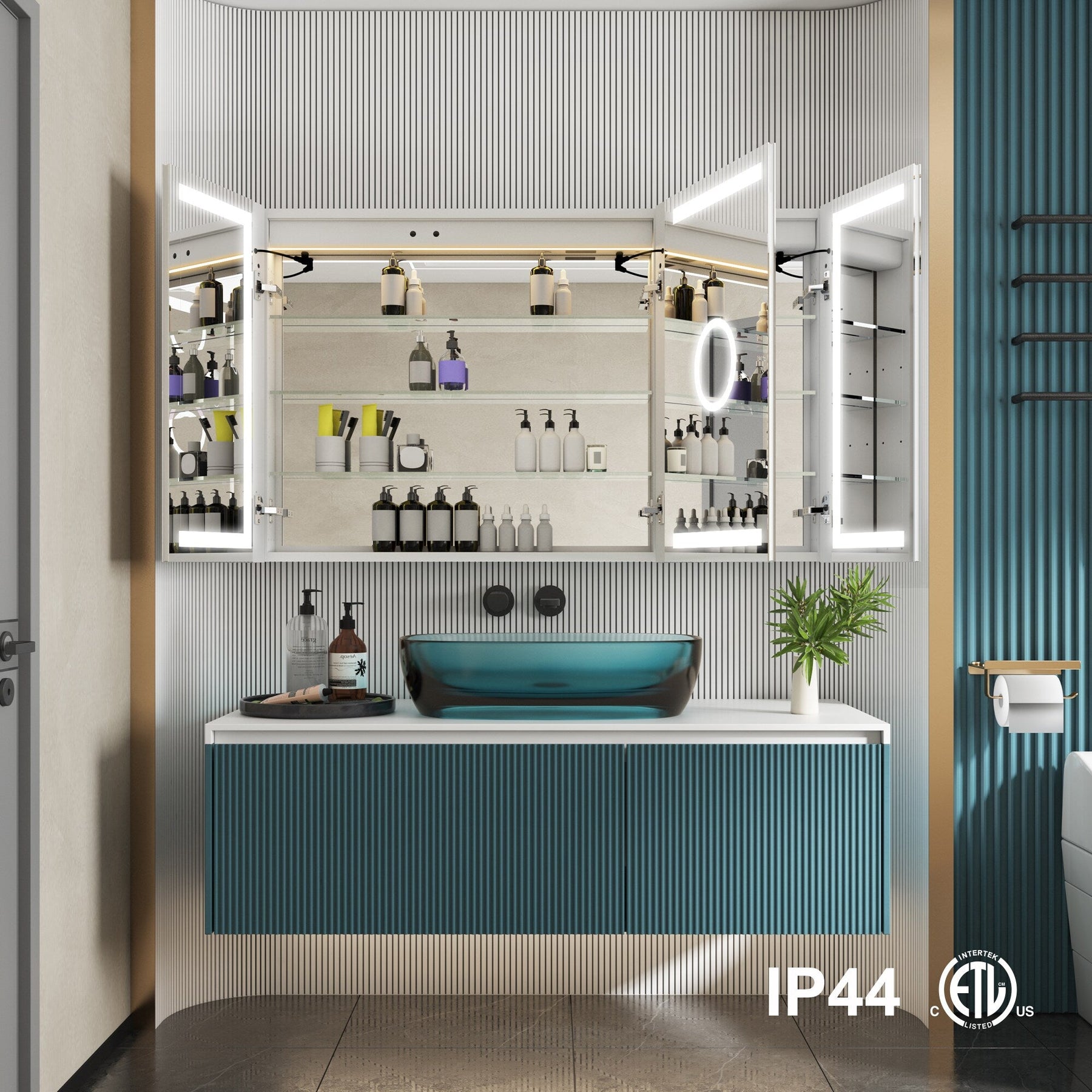 • Smart Storage: Three adjustable shelves offer flexible storage for toiletries and personal items.