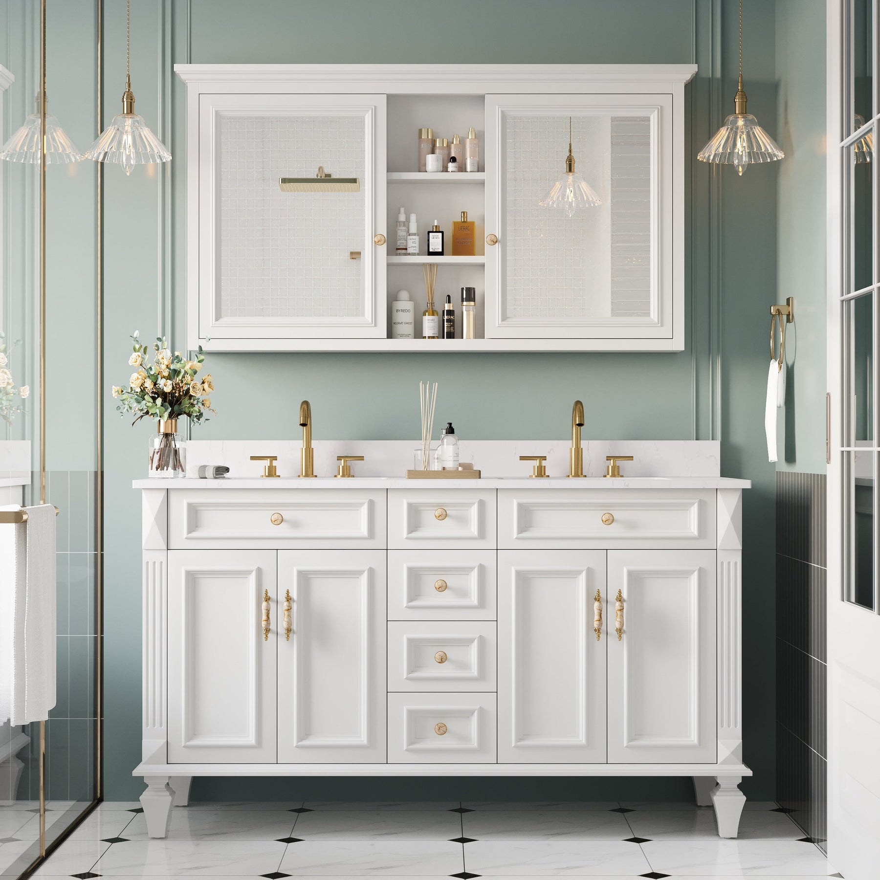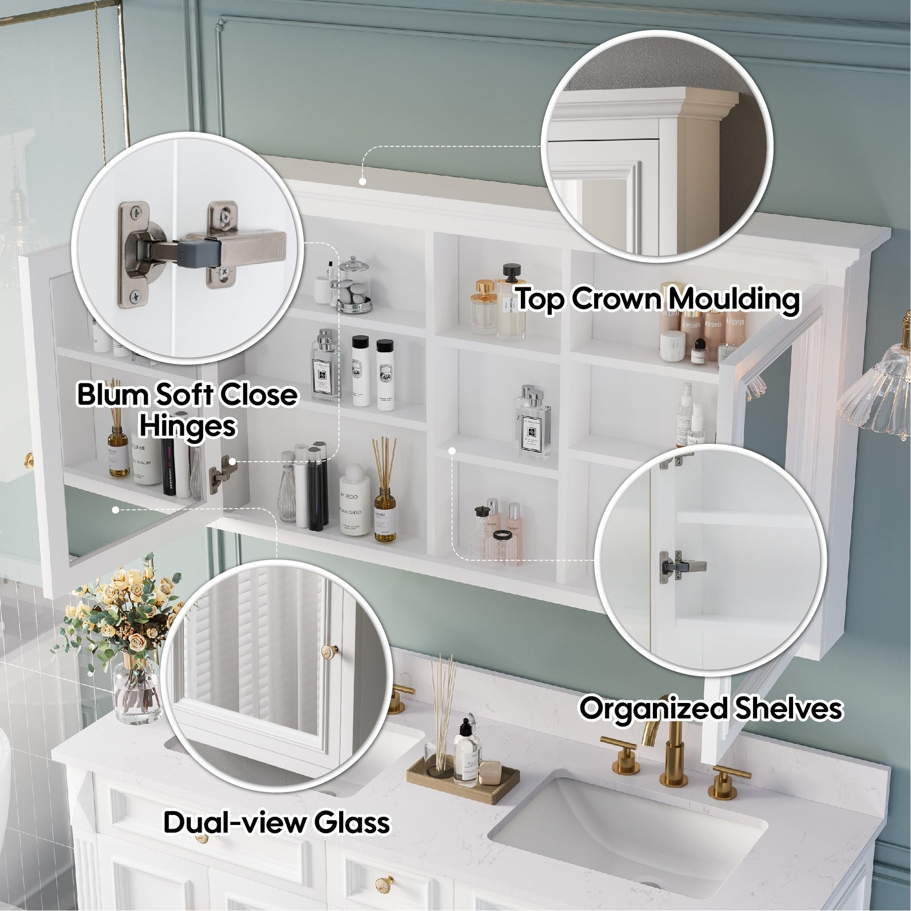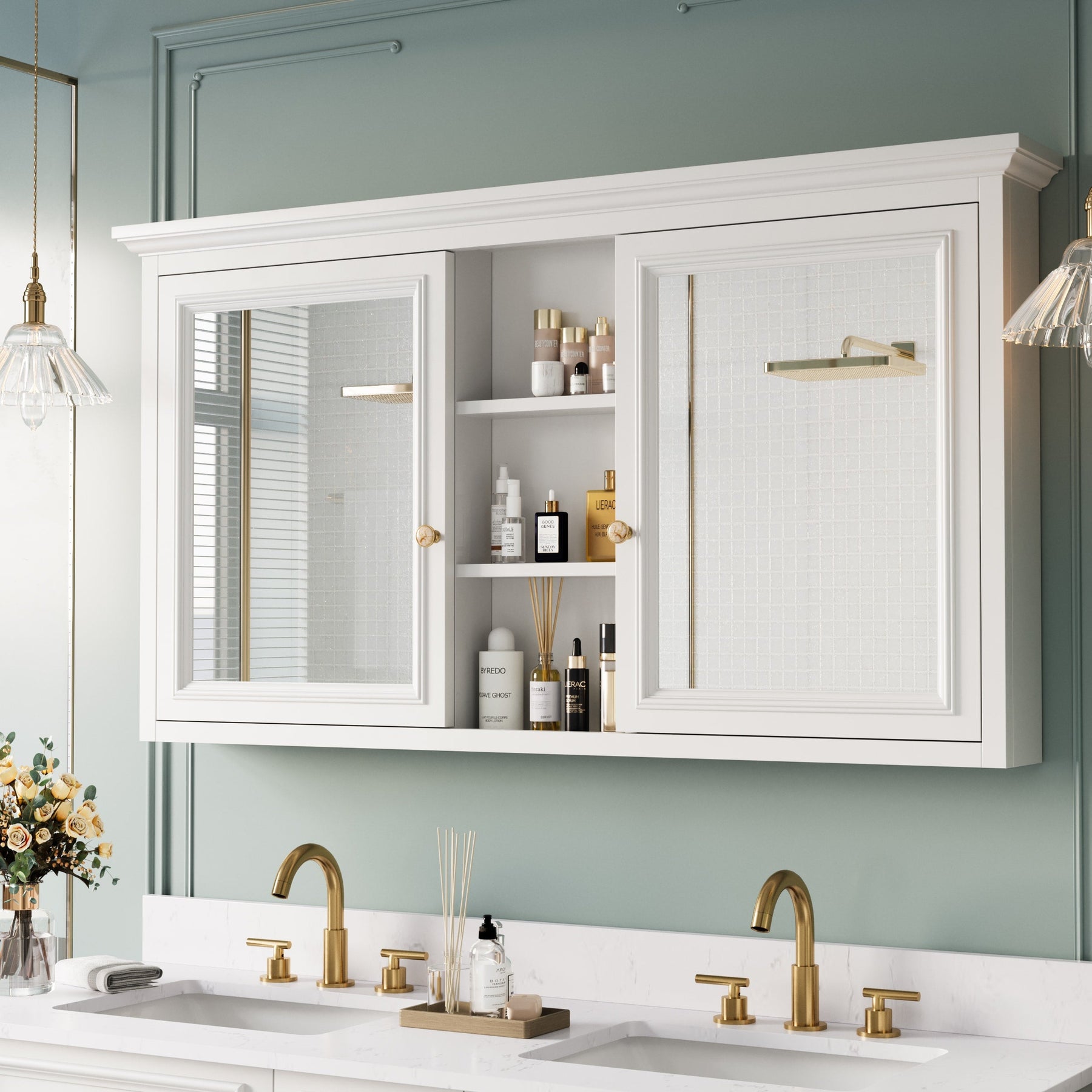 Forclover 55-in x 30-in Surface Mount White Mirrored Soft Close Medicine Cabinet