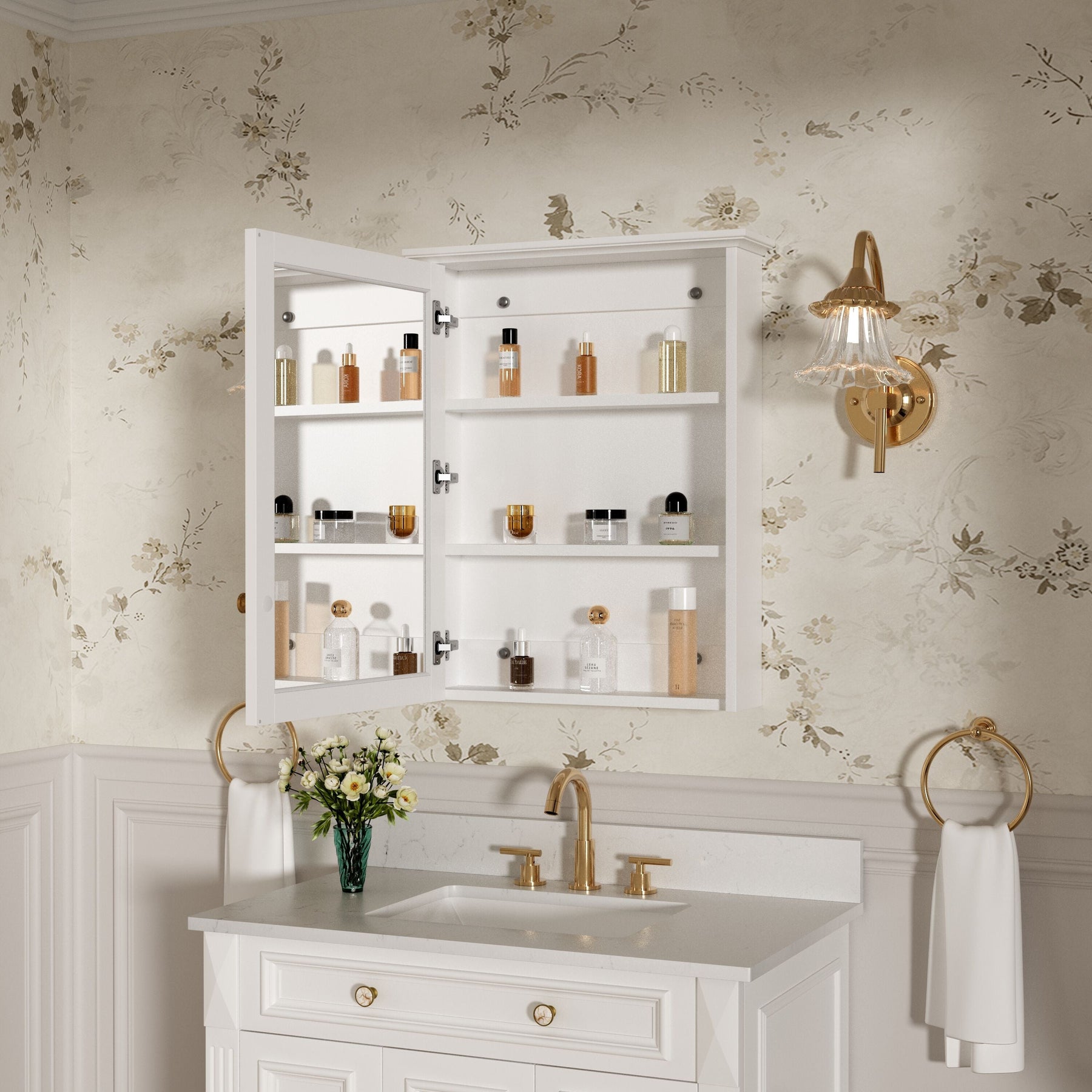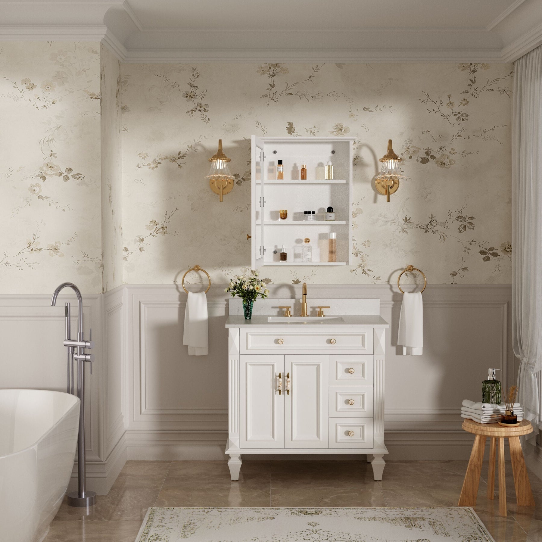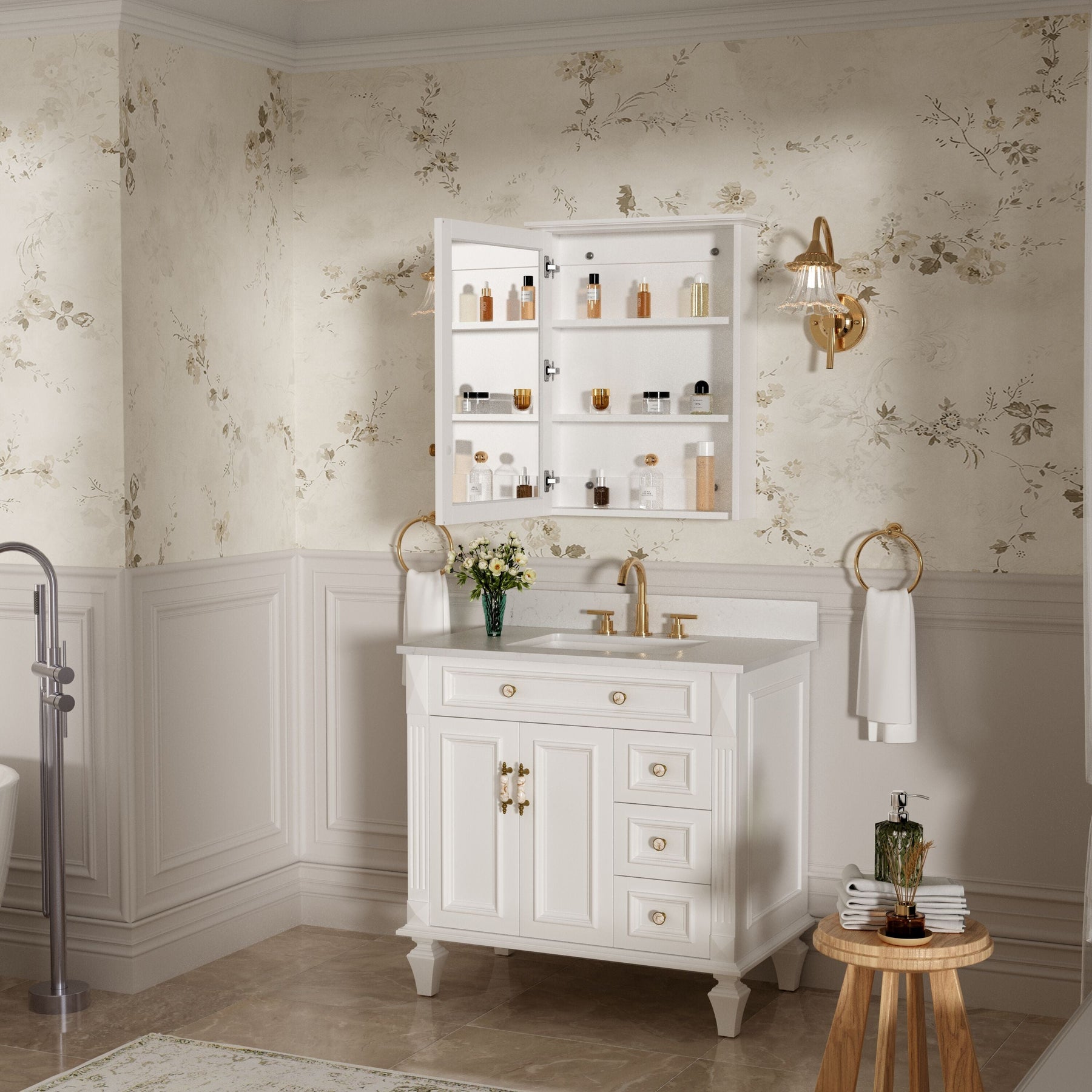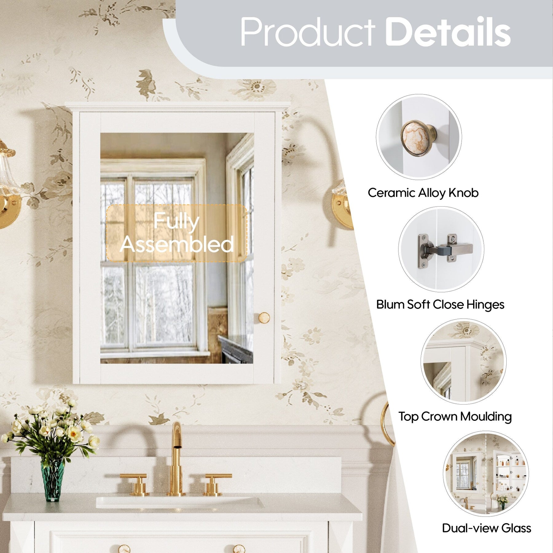 Elevate your bathroom ambiance with our exquisite Forclover Medicine Cabinet, where traditional craftsmanship meets contemporary design. The solid poplar wood, complemented by its seamless soft-close mirror, transforms any space into a sanctuary of elegance. Use this cabinet to artfully store your essentials while adding a layer of sophistication to your interior. This piece is a hallmark of luxury, bringing both beauty and utility into your daily routine.