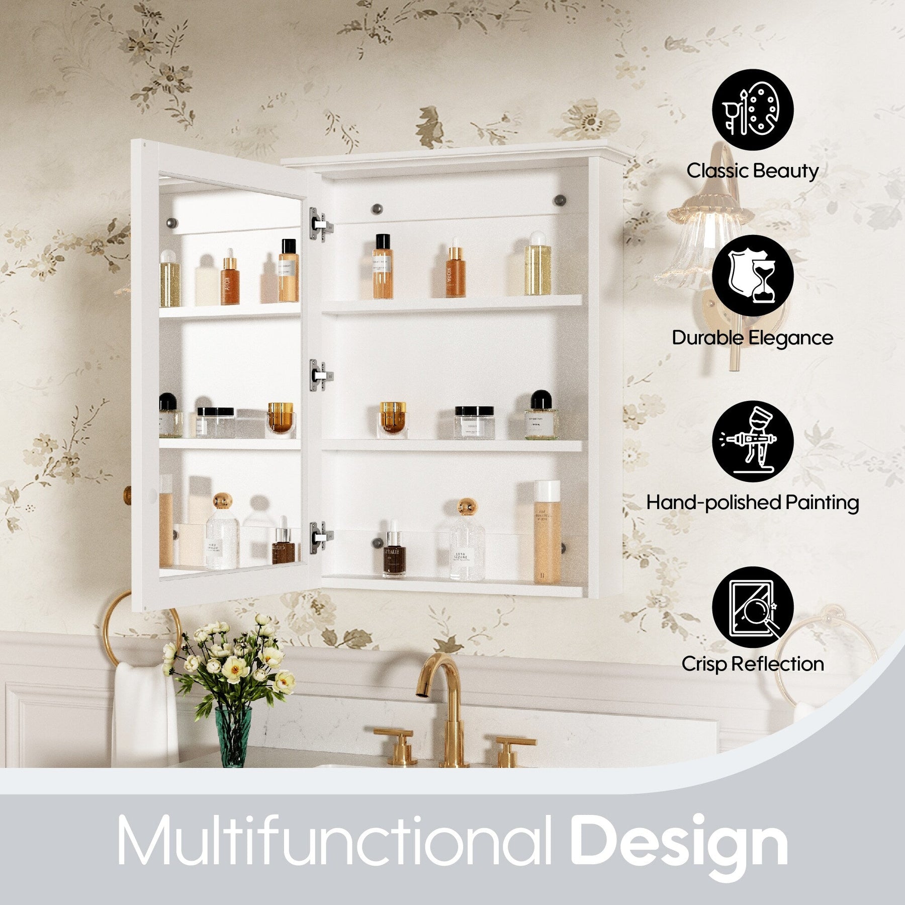 Upgrade your bathroom today with this timeless medicine cabinet and experience elegance and functionality in every detail.