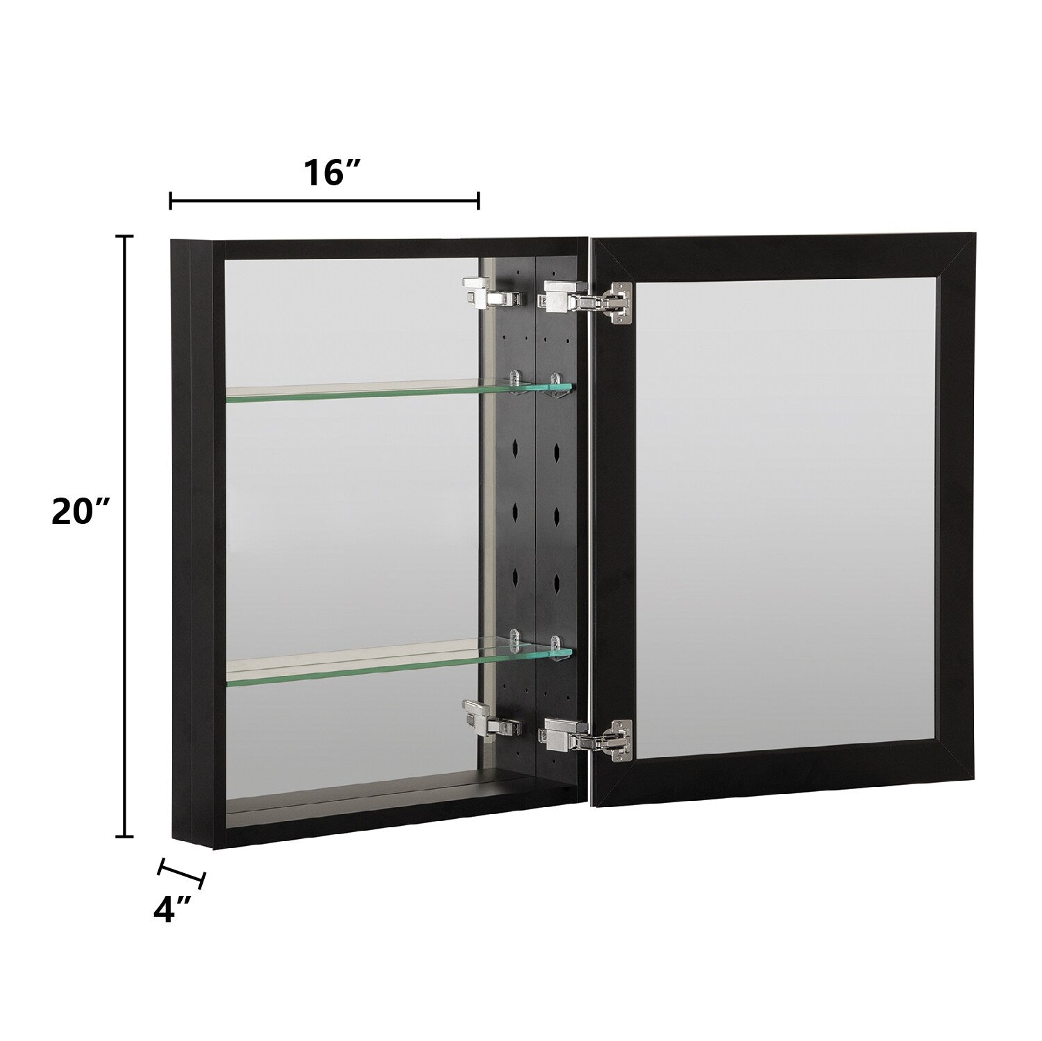 Forclover KF 16-in x 20-in Surface/Recessed Mount Black Mirrored Soft Close Medicine Cabinet