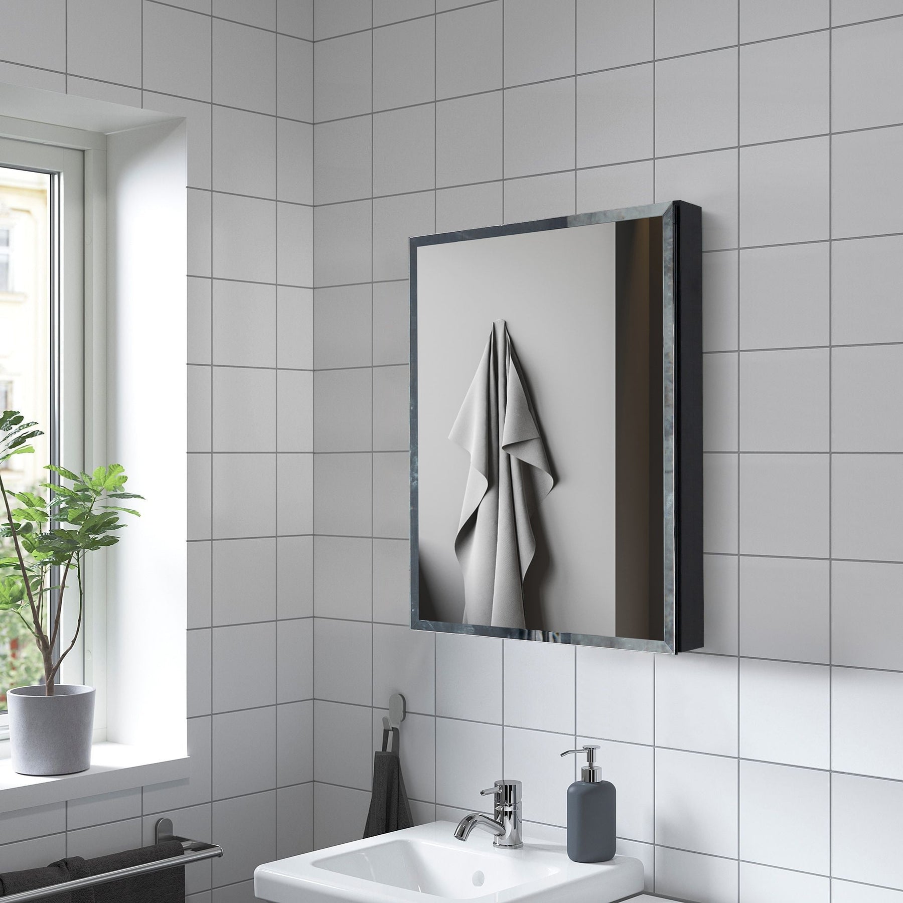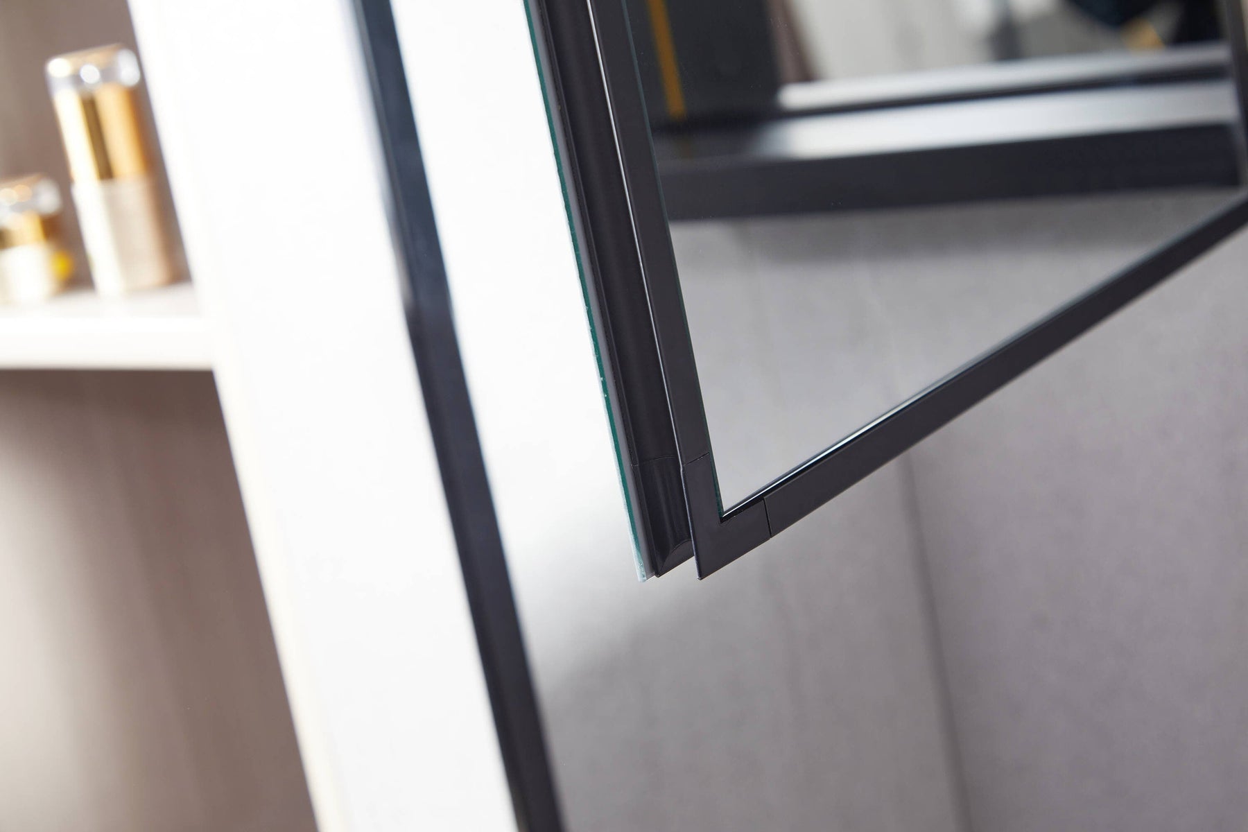 • Reversible Door Design: Frameless mirrored door with beveled edges, opens left or right for flexible installation.