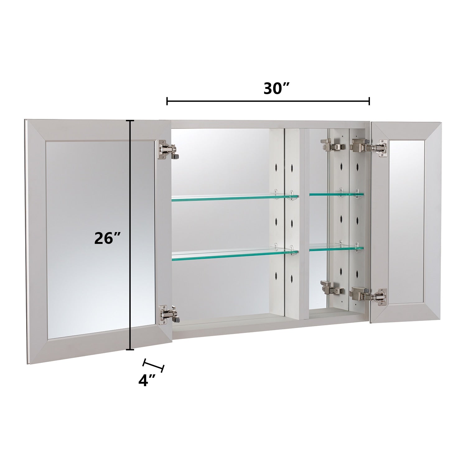 Forclover KF 30-in x 26-in Surface/Recessed Mount Satin Mirrored Soft Close Medicine Cabinet