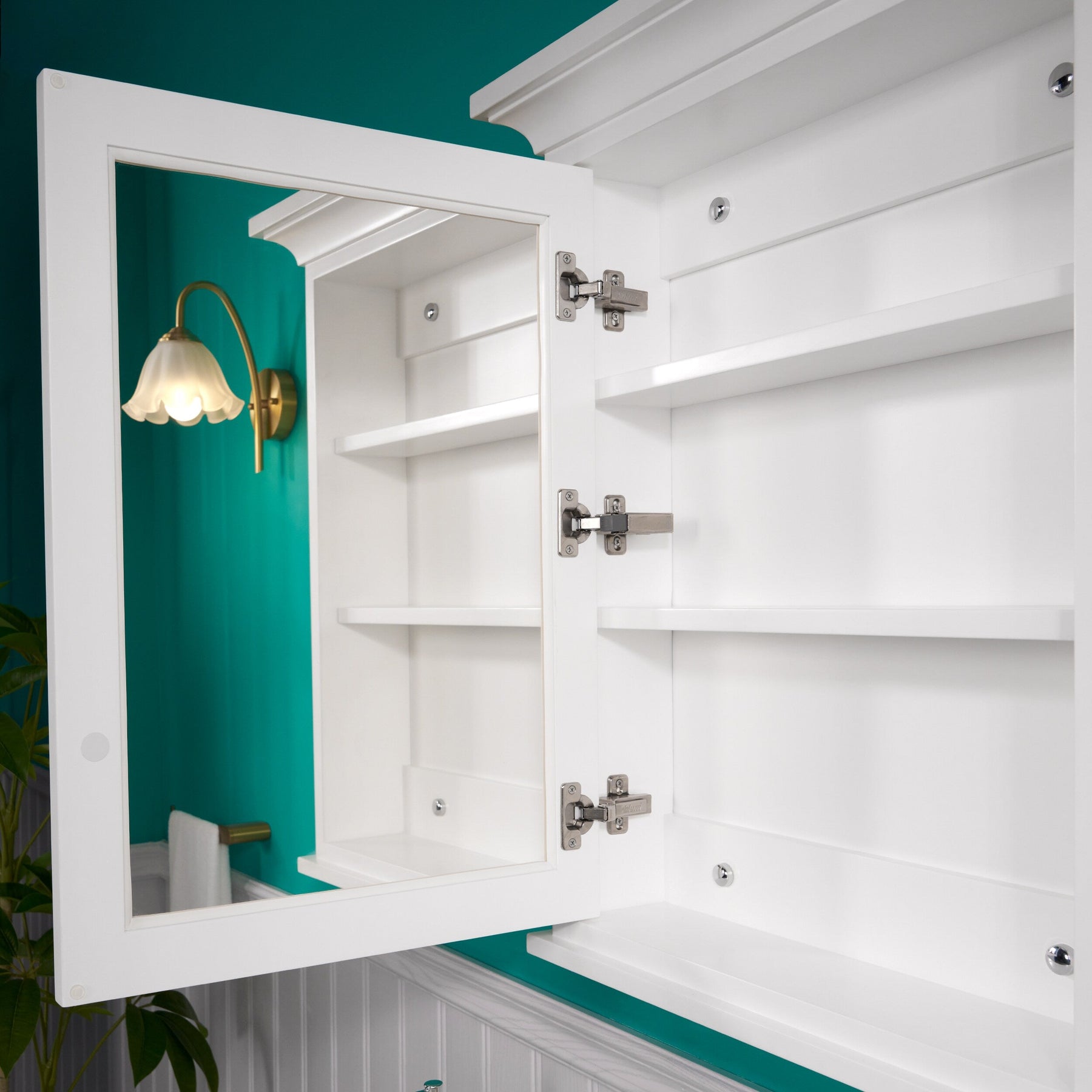 Forclover Solid Wood 24-in x 30-in Lighted Surface Mount White Mirrored Soft Close Medicine Cabinet