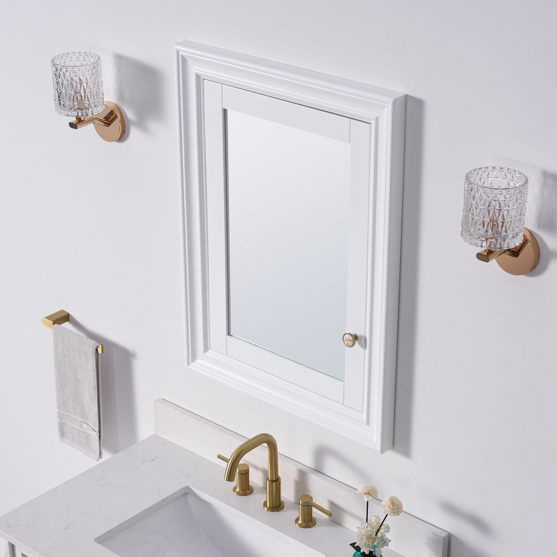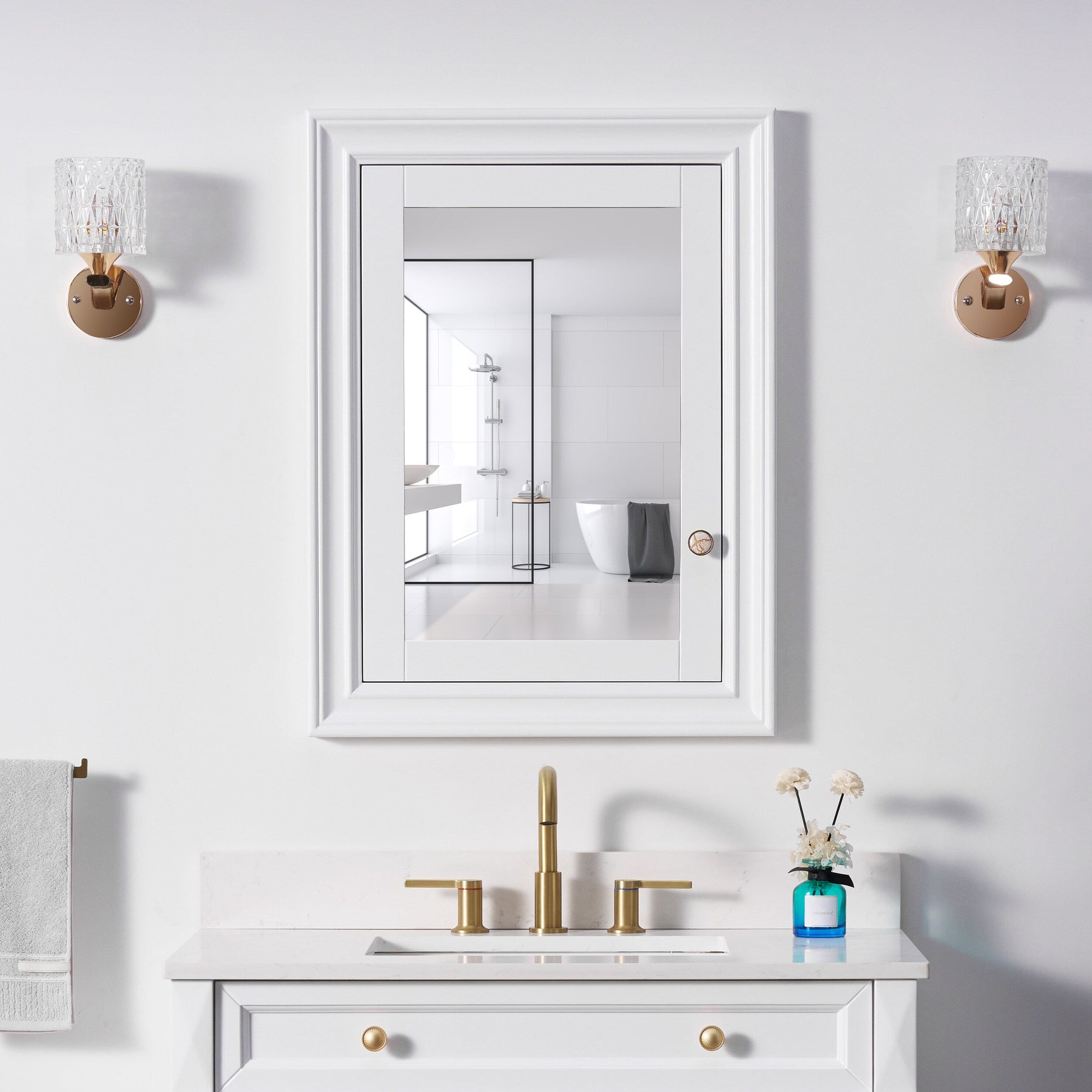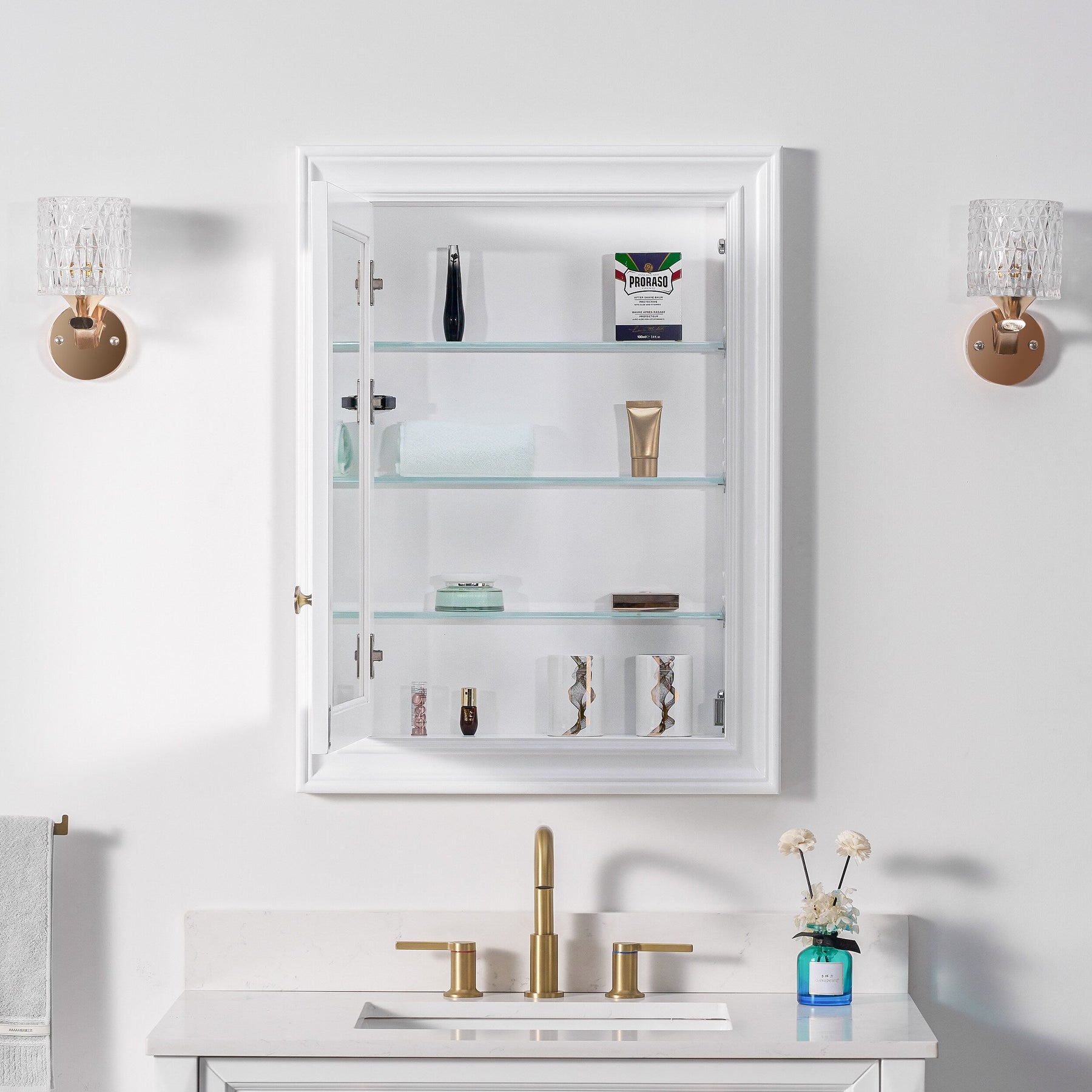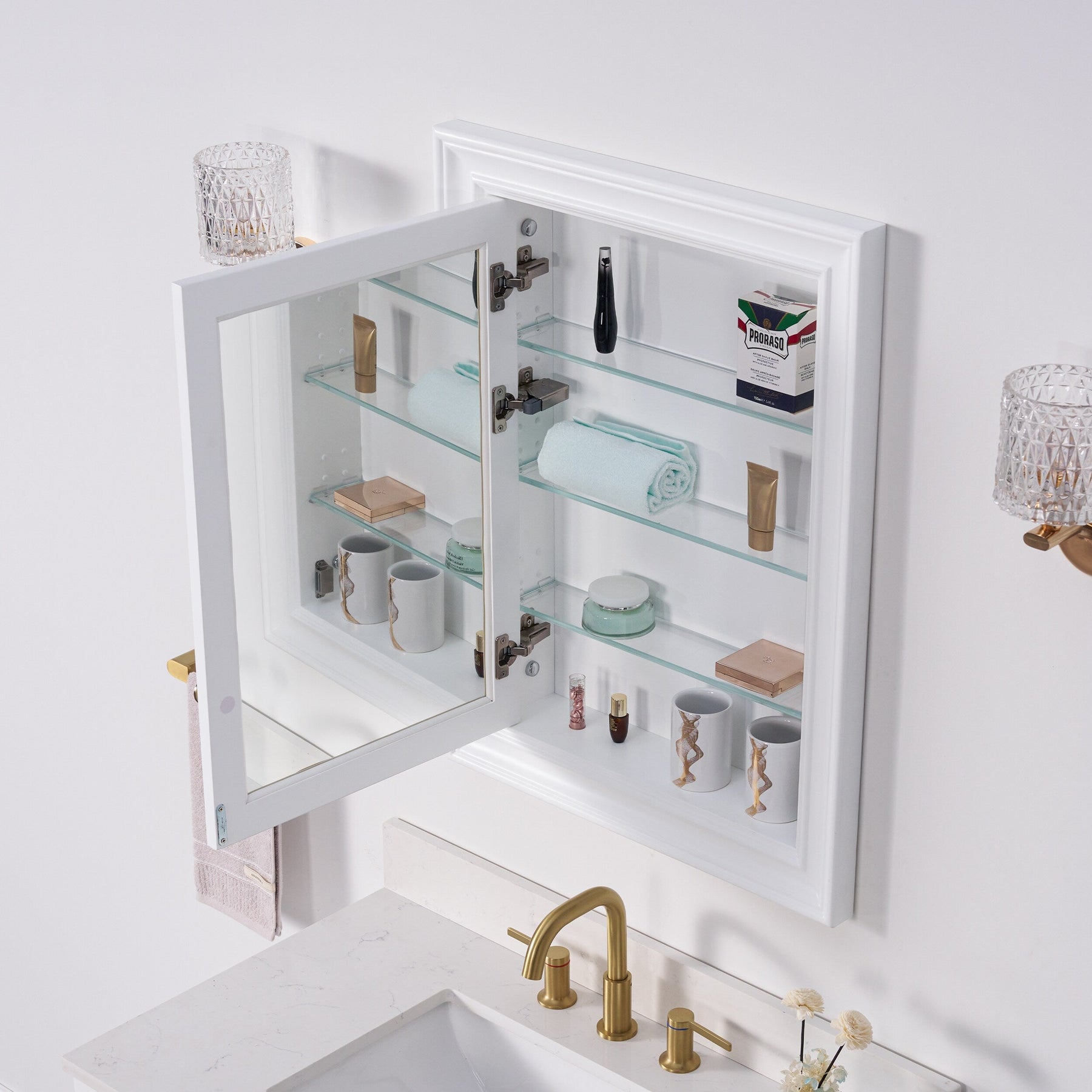 Forclover Solid Wood 24-in x 32-in Recessed Mount White Mirrored Soft Close Medicine Cabinet