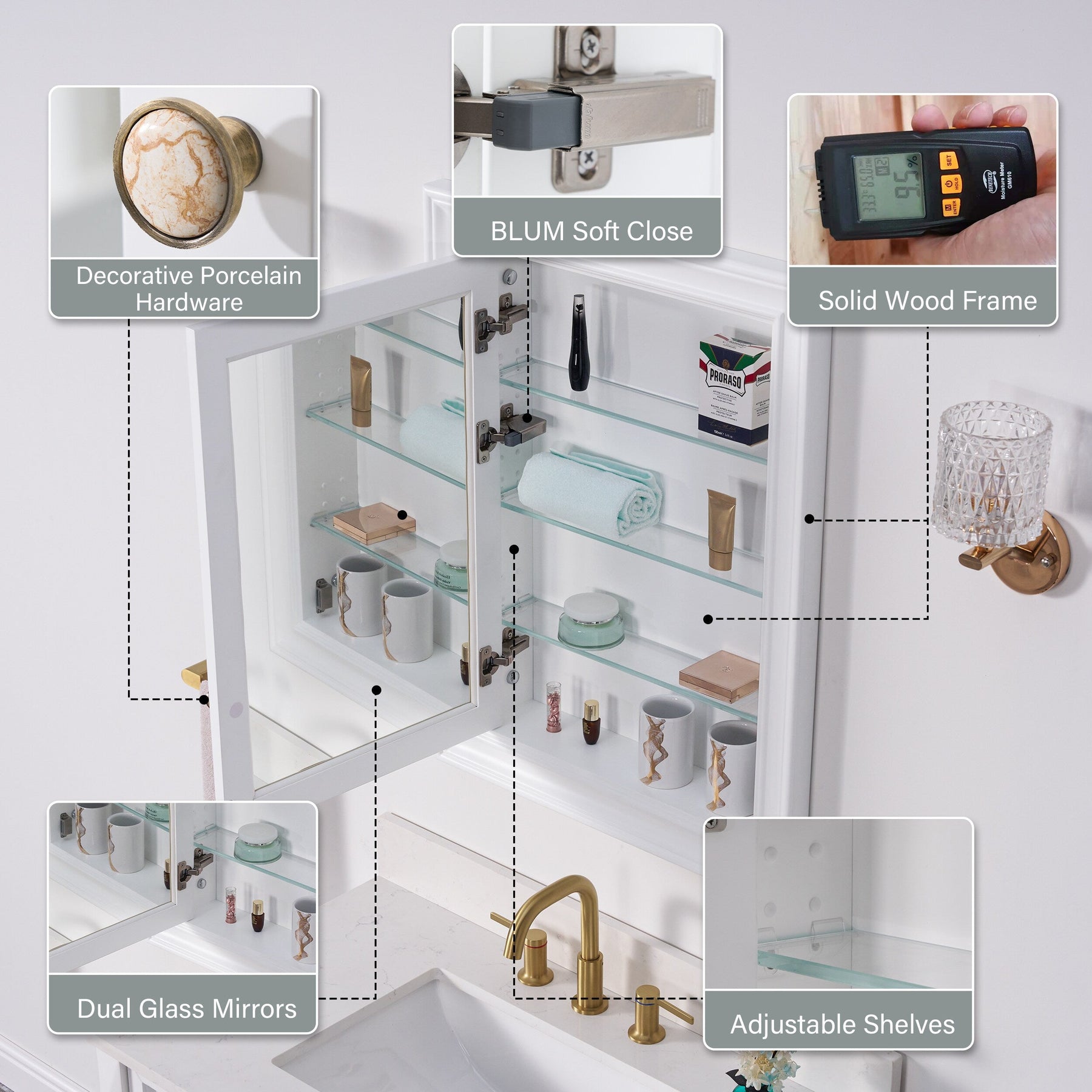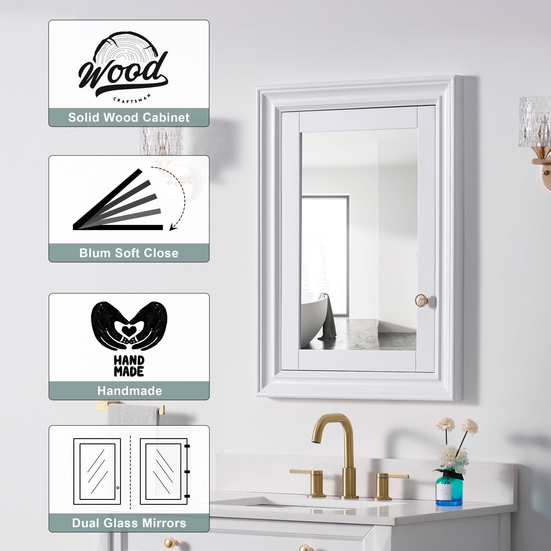 Solid Wood Mirrored Medicine Cabinet with Soft Close