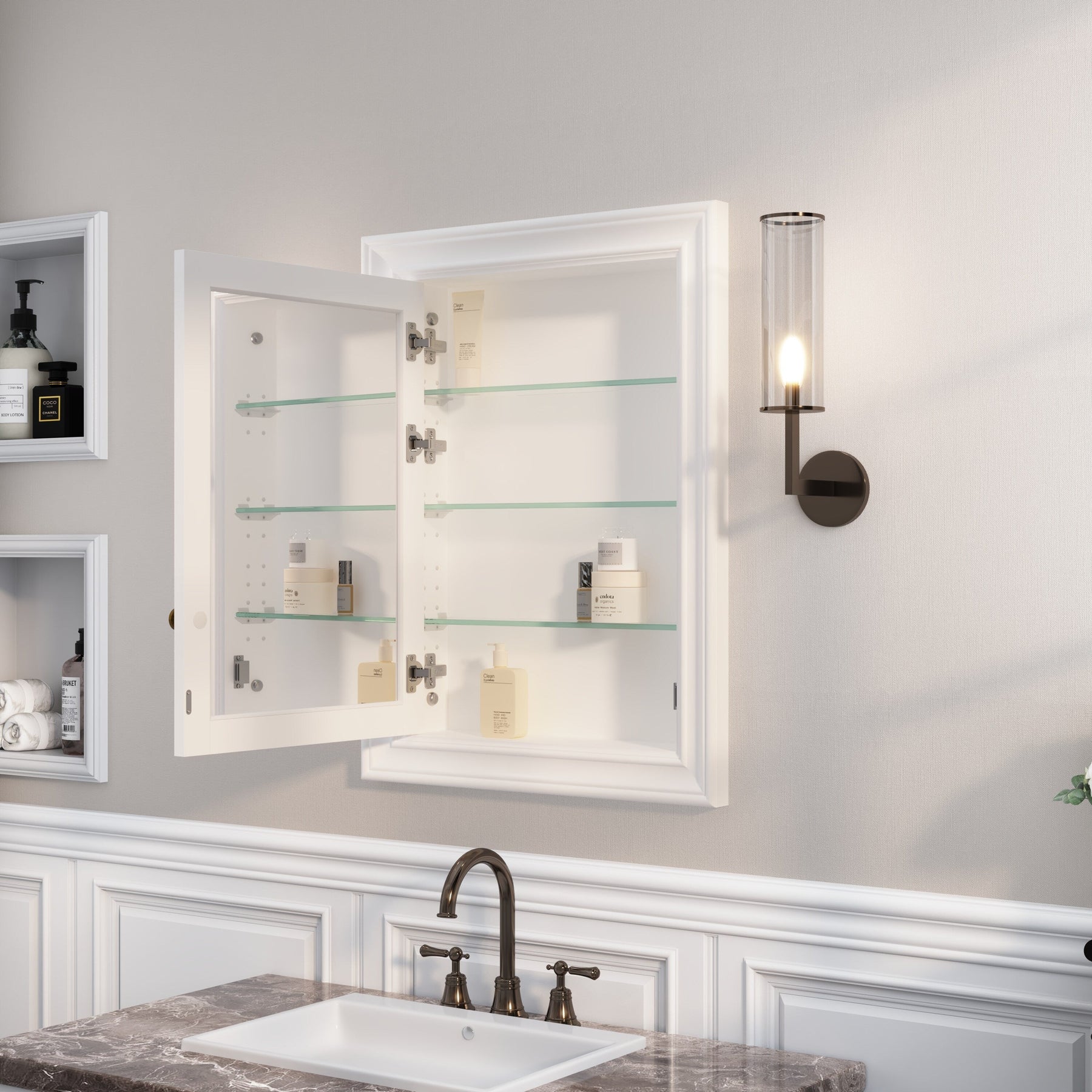 • Mounting: Recessed mount installation for a sleek and seamless look in any bathroom.