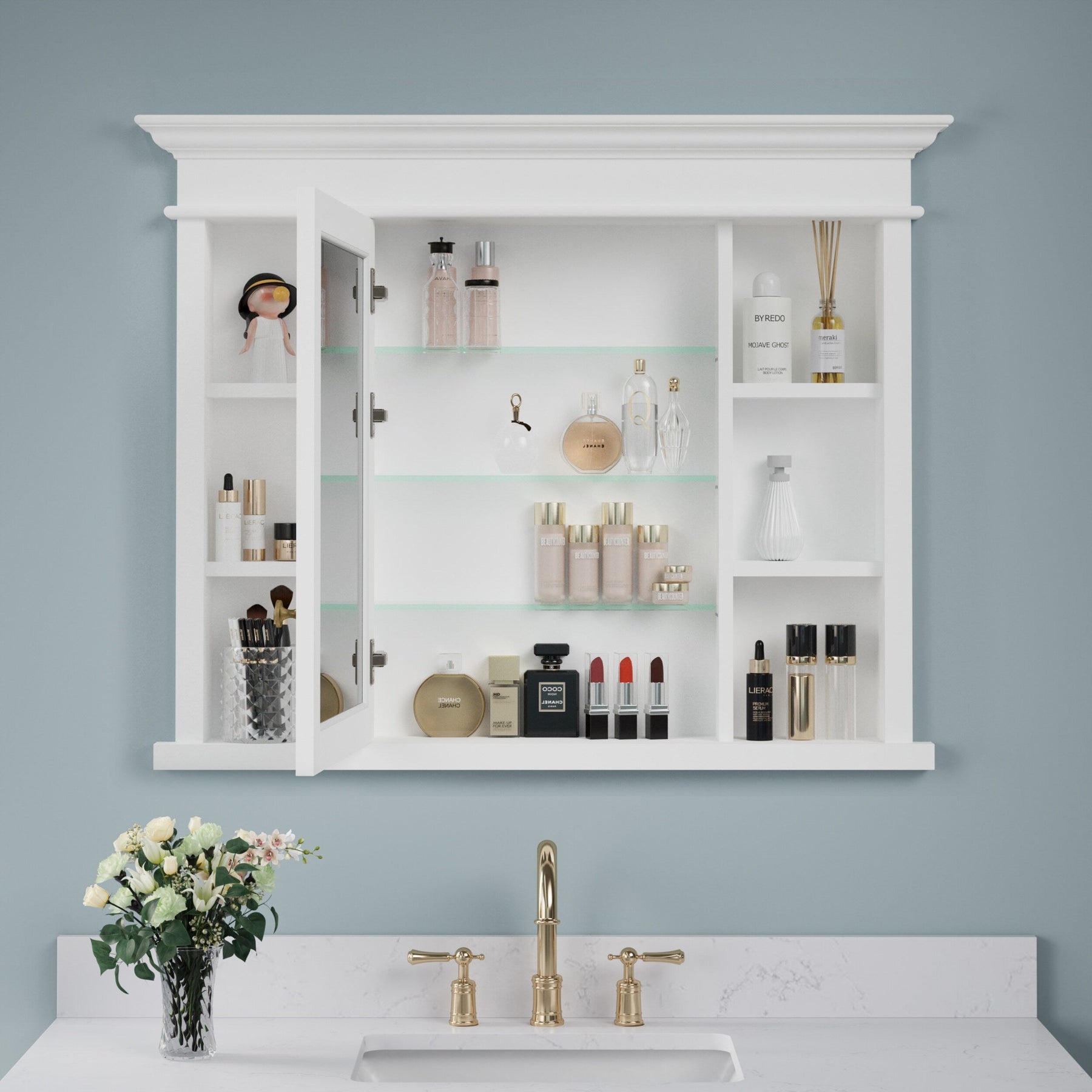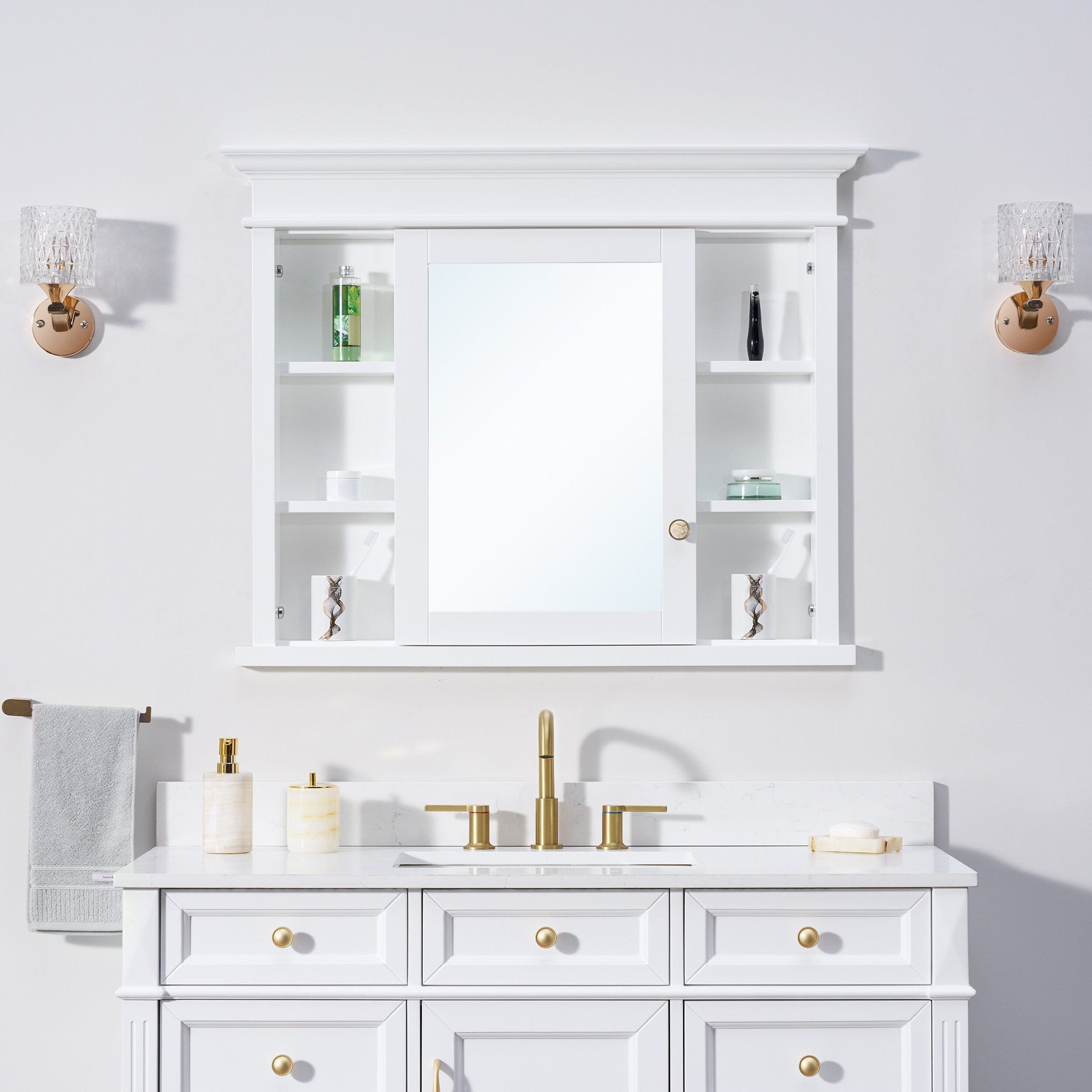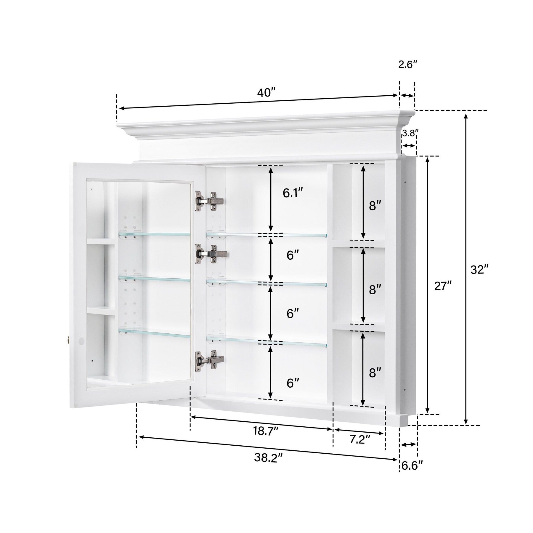 Forclover Solid Wood 40-in x 32-in Recessed Mount White Mirrored Soft Close Medicine Cabinet