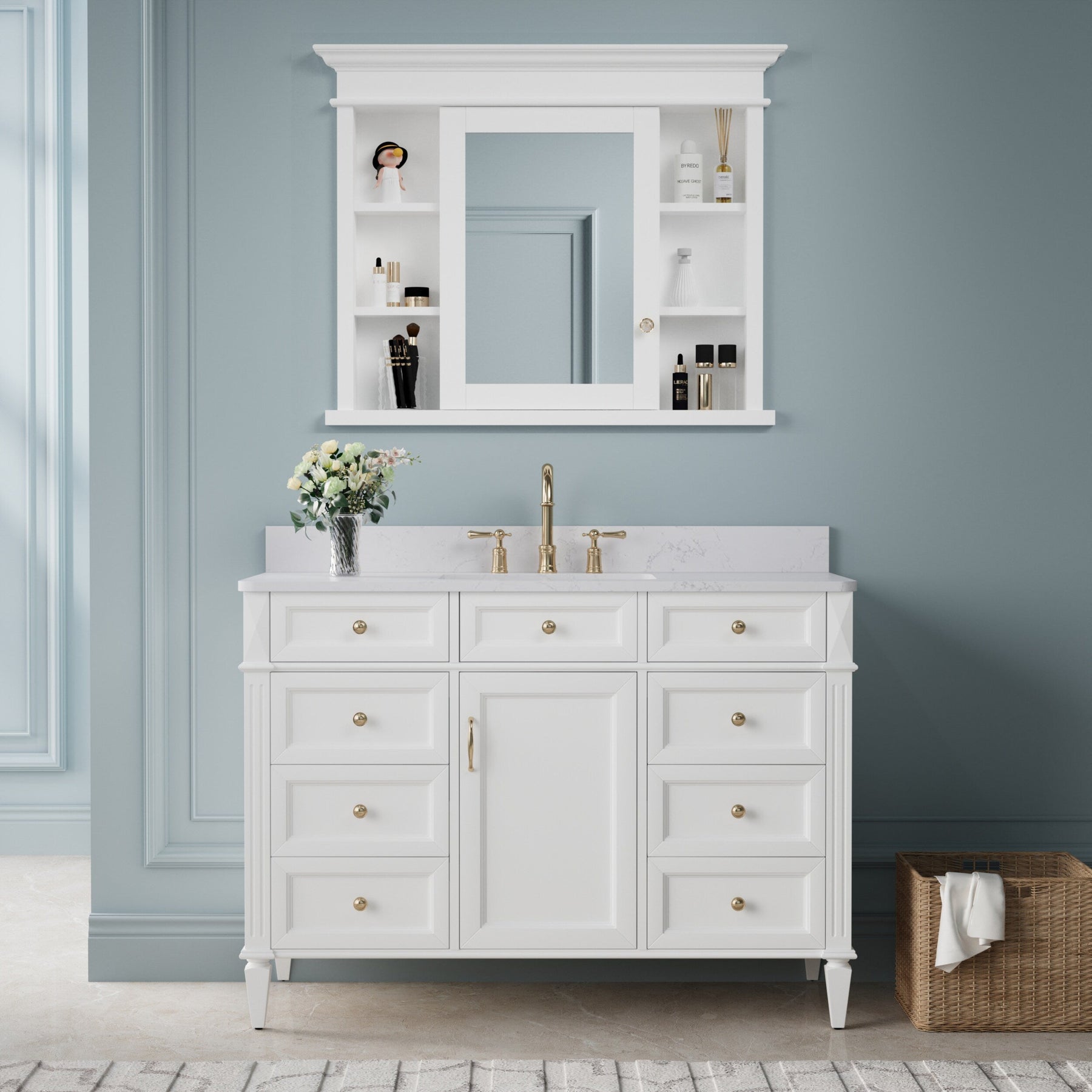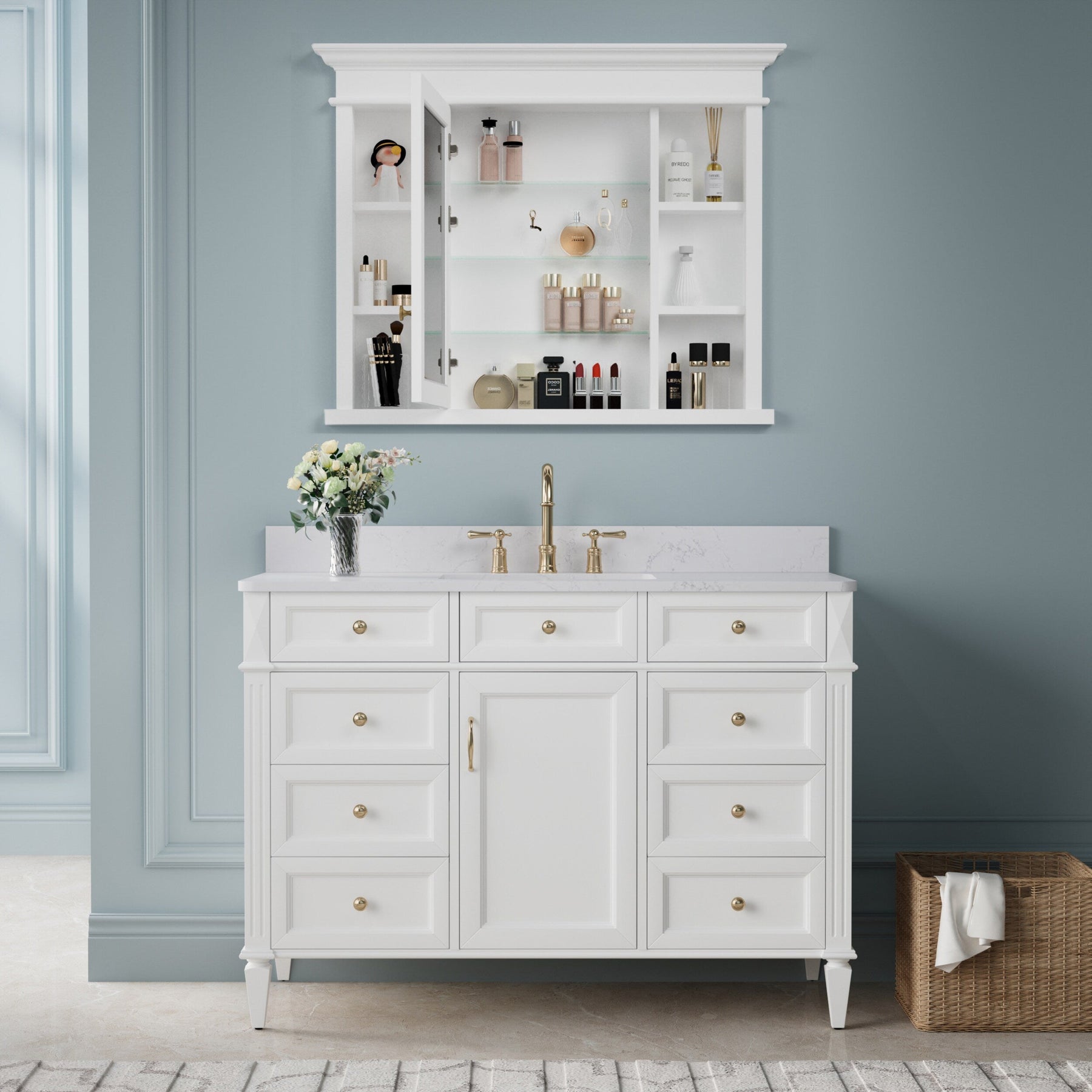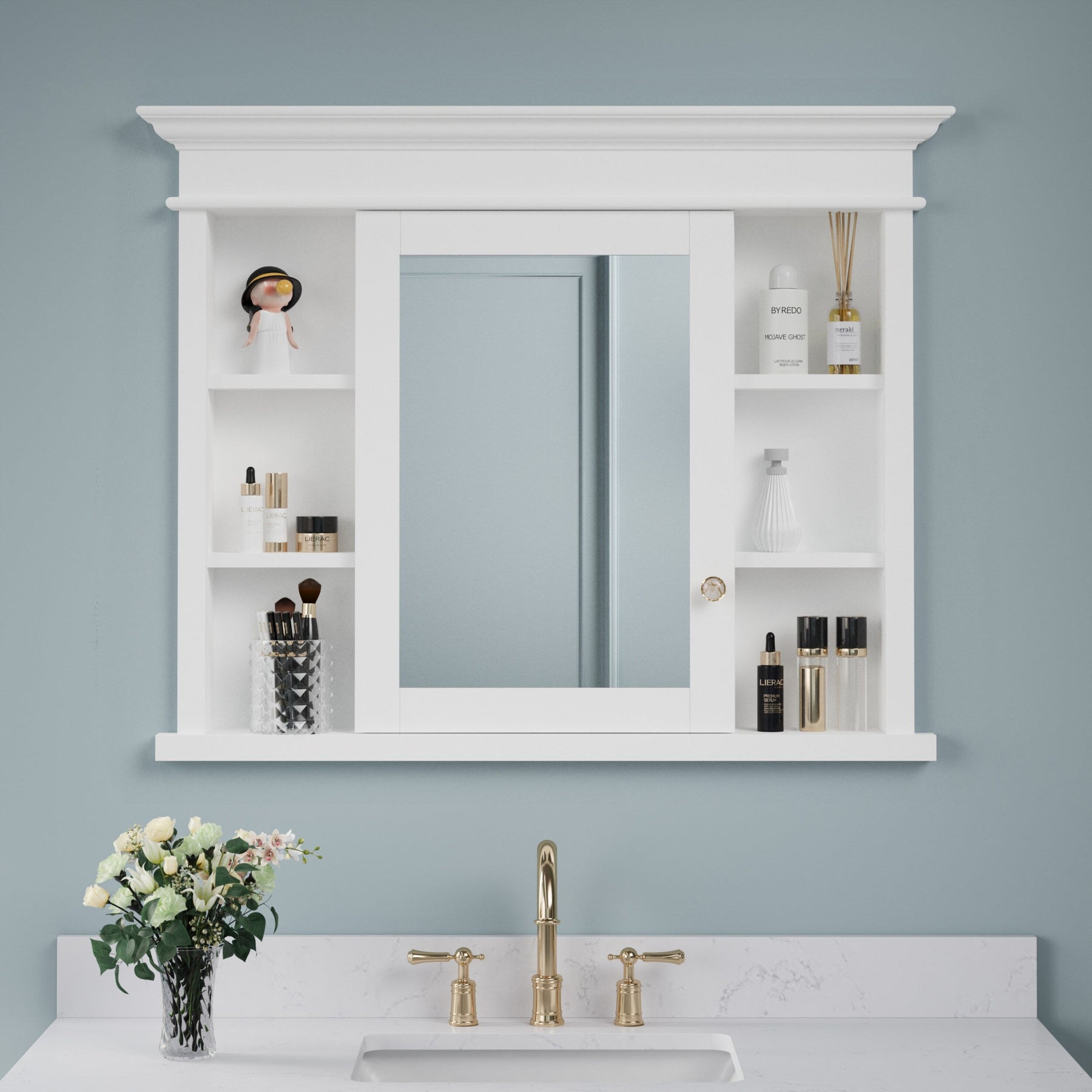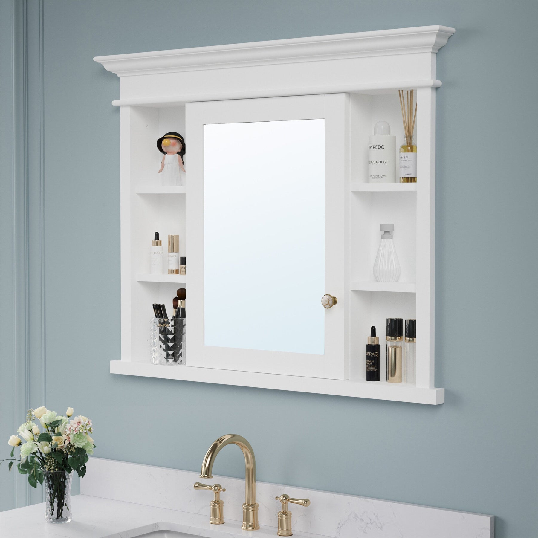 Forclover Solid Wood 40-in x 32-in Recessed Mount White Mirrored Soft Close Medicine Cabinet