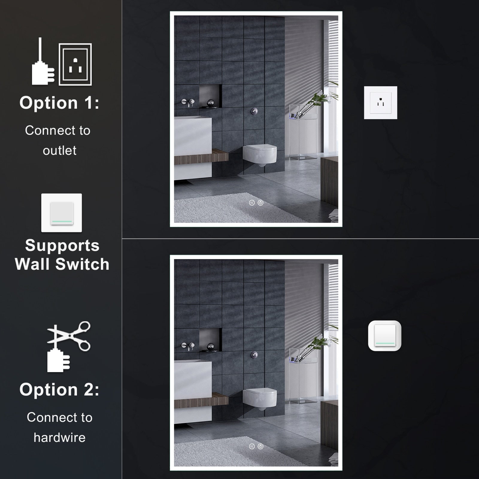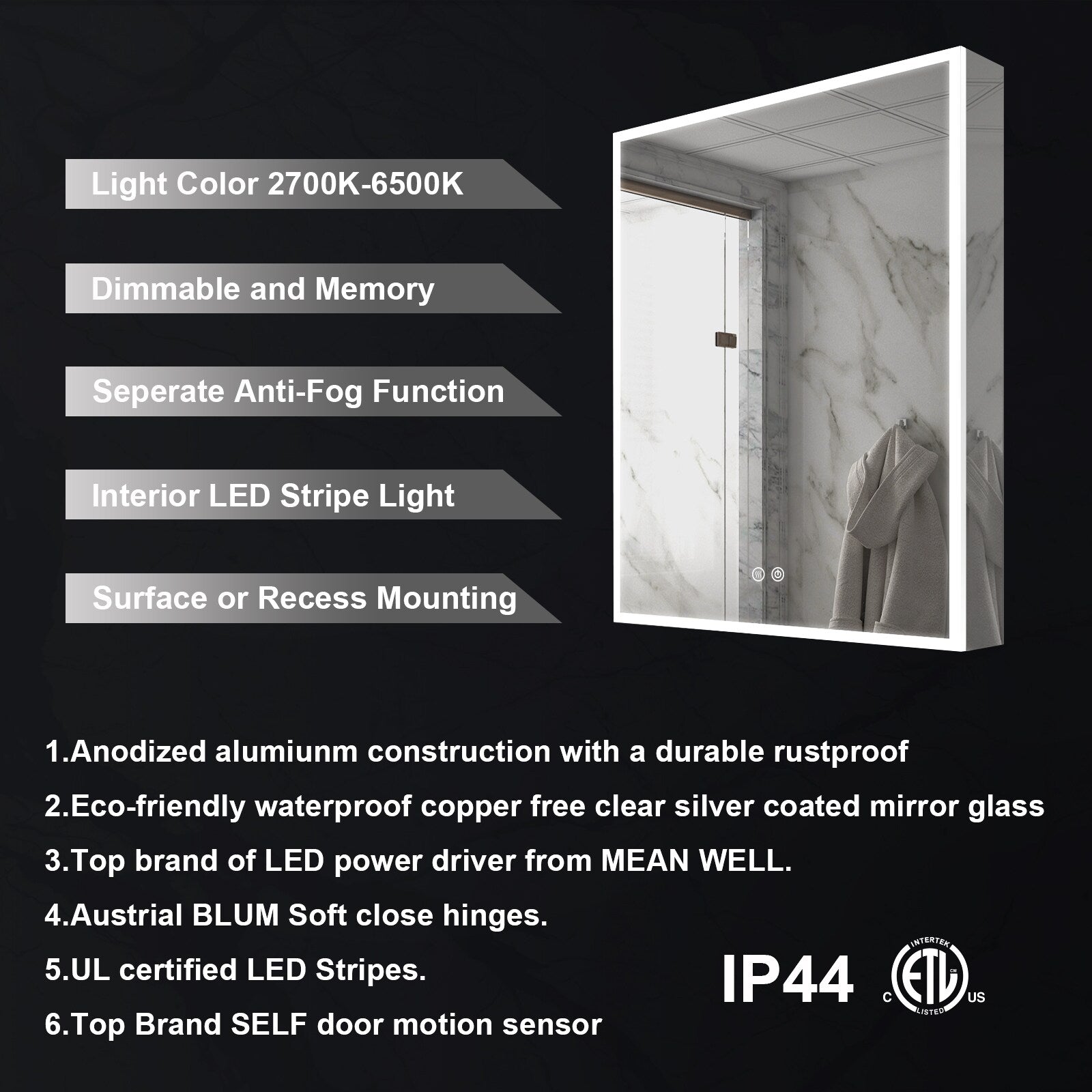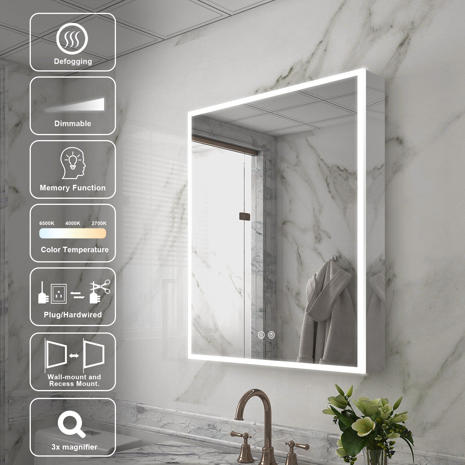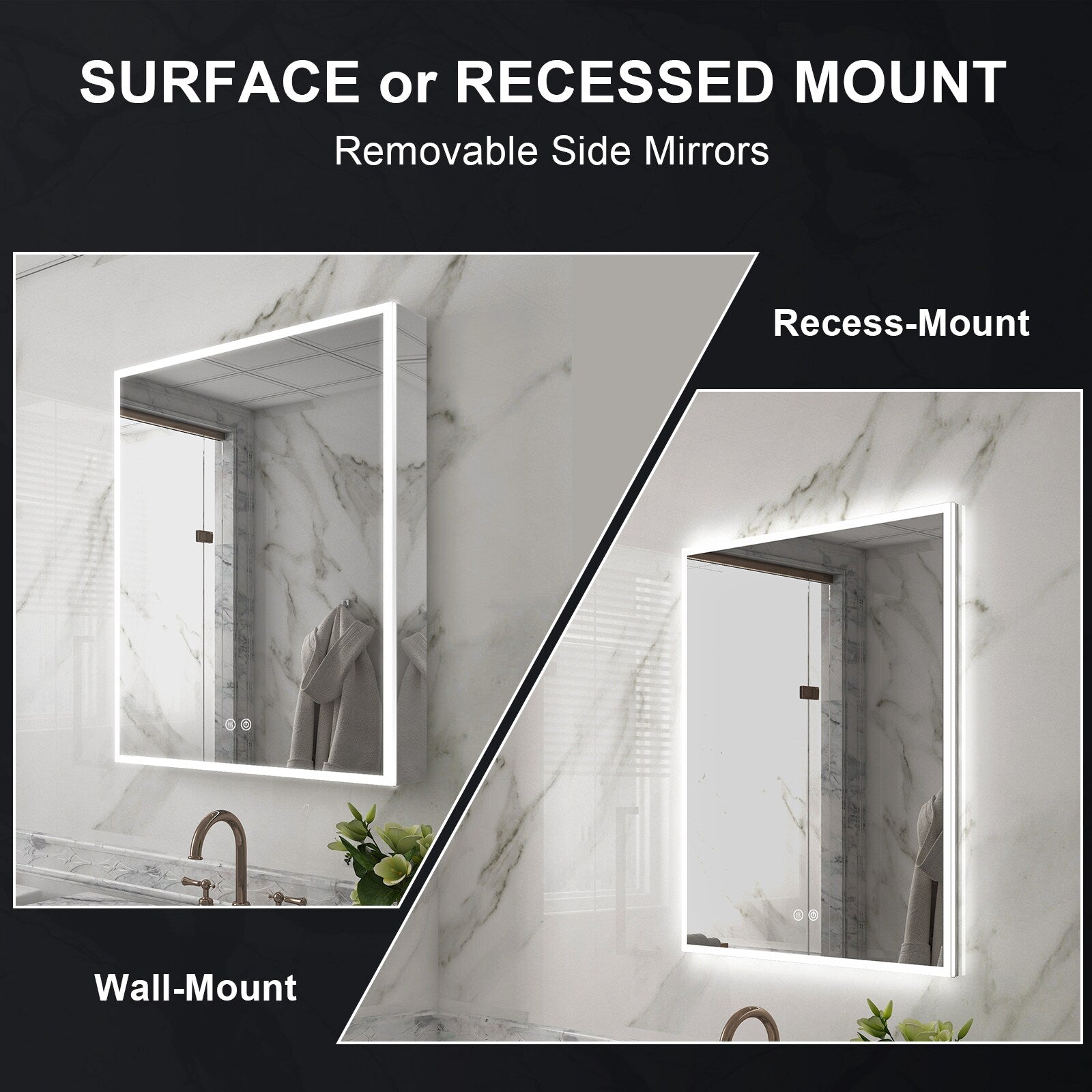 Forclover ST Modern 24-in x 30-in Lighted LED Fog Free Surface/Recessed Mount Sliver Mirrored Soft Close Medicine Cabinet with Outlet