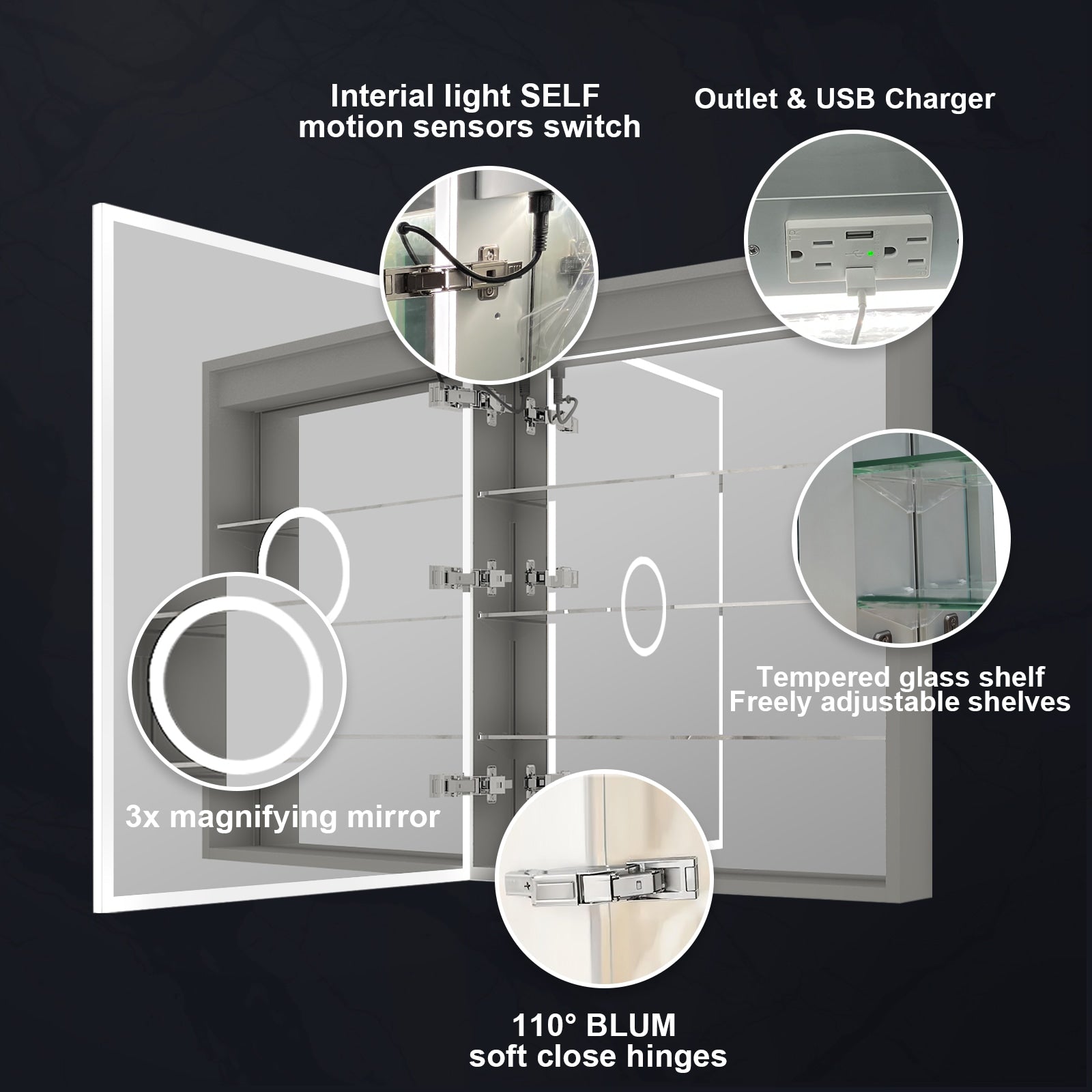 Modern LED Fog-Free Medicine Cabinet with Soft Close