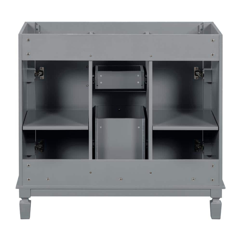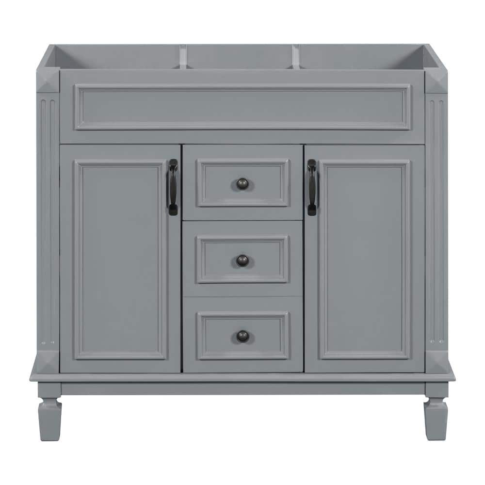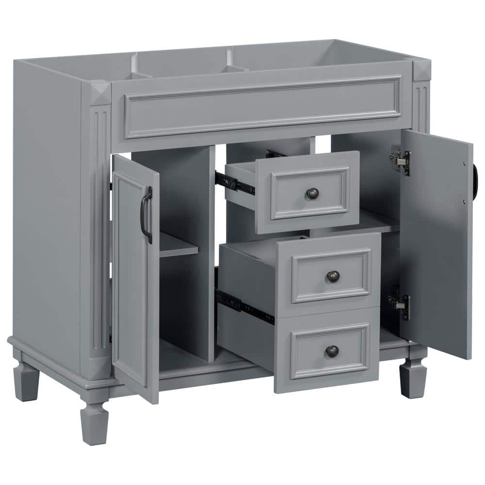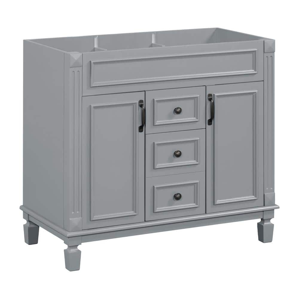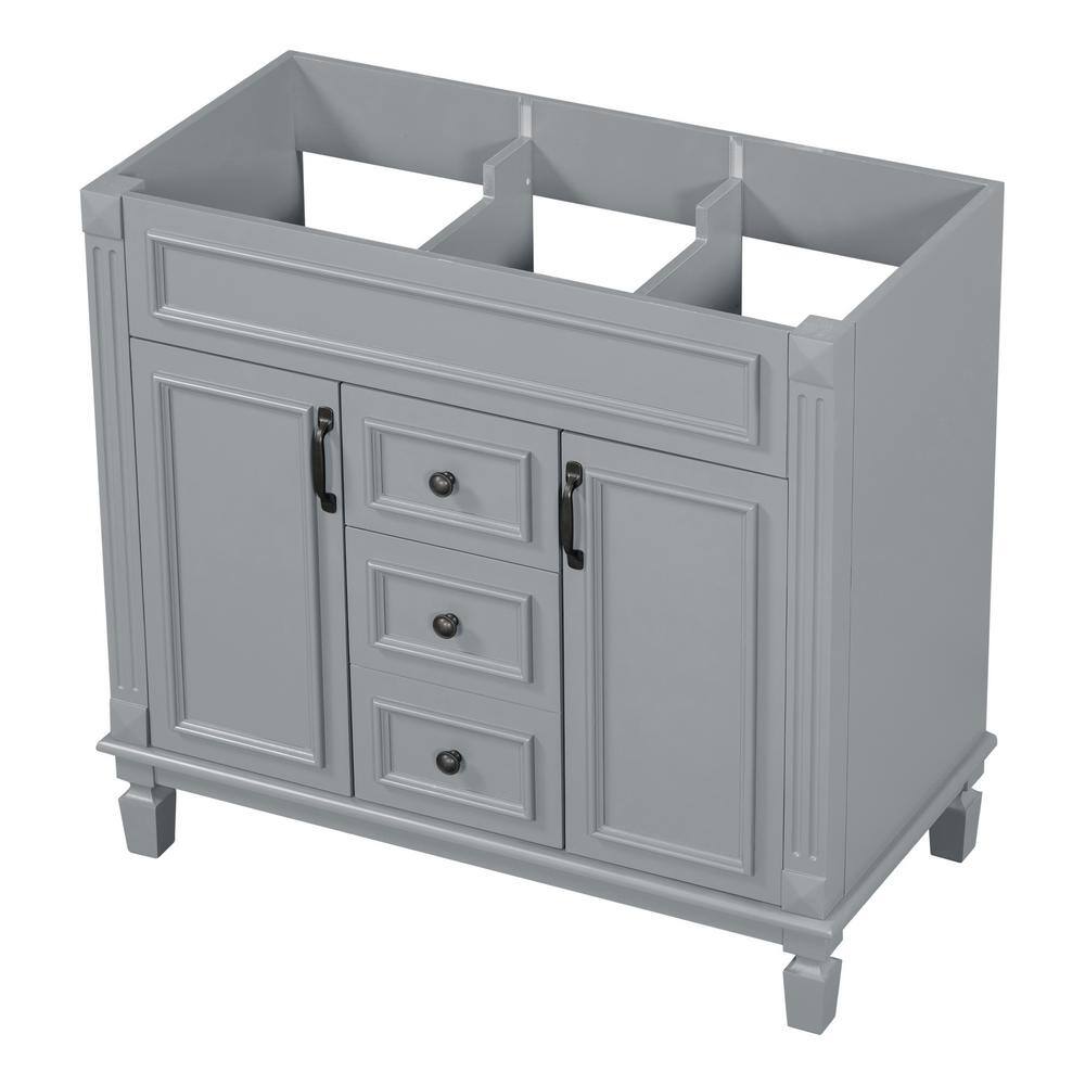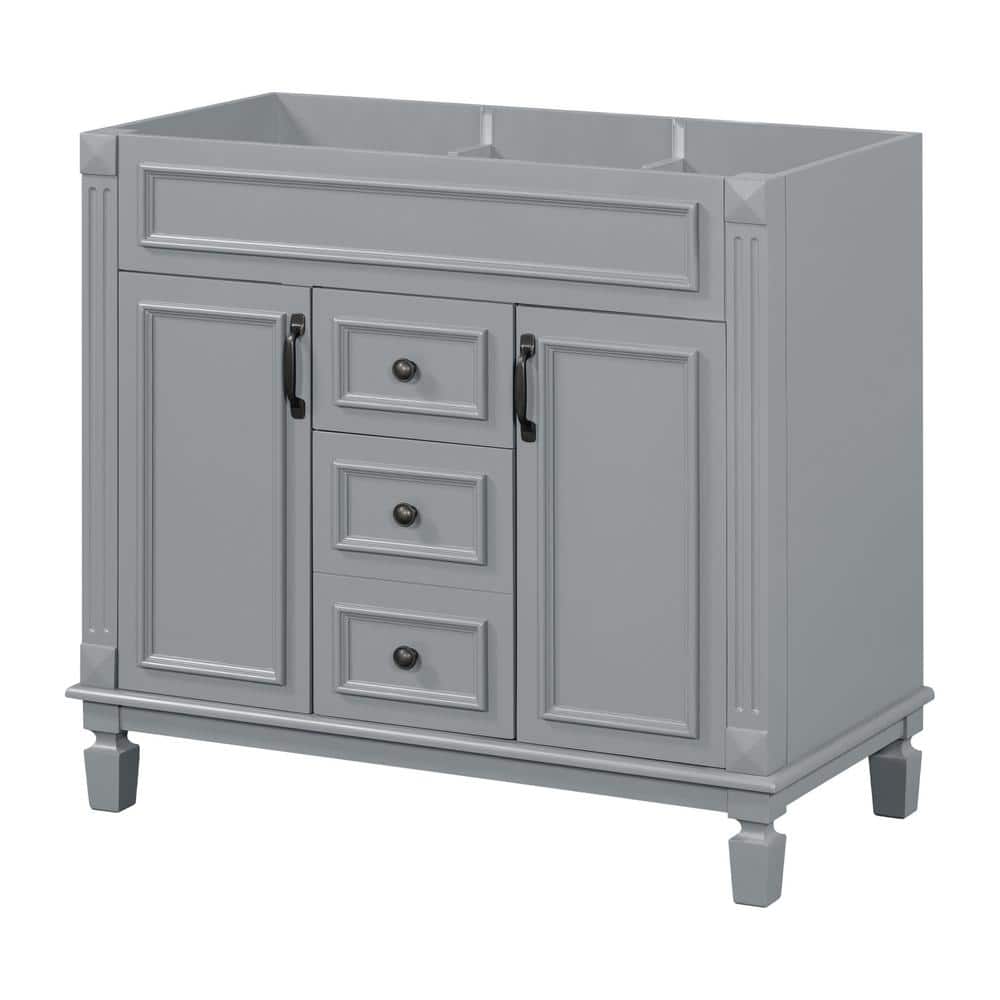 FUNKOL 35.9 x 17.9 x 34 In. Gray Vertical Bathroom Cabinet with 2 Drawers and 2 Soft Close Doors, Top Sink Not Included