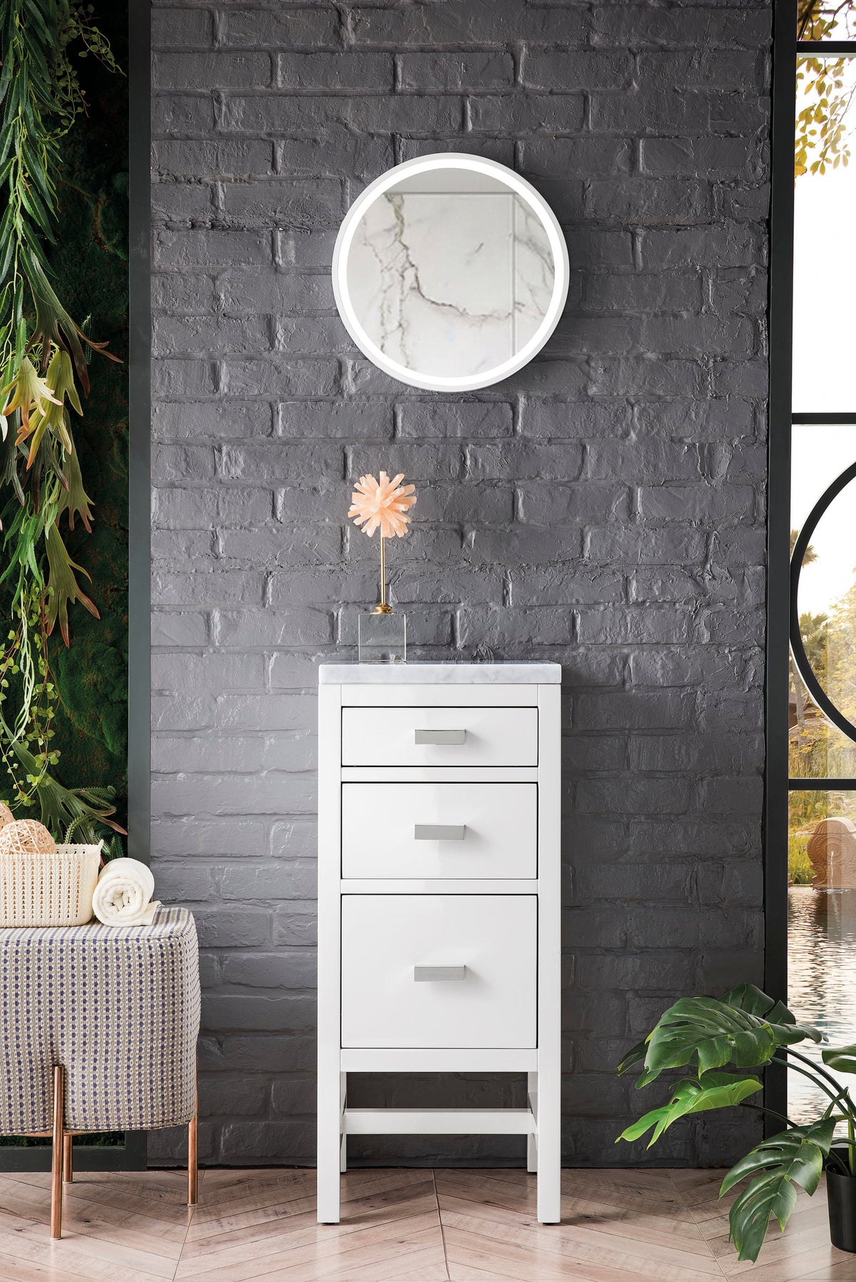 This sleek and contemporary bathroom wall cabinet by James Martin Vanities is a stylish and functional storage solution for modern homes. Its glossy white finish and polished chrome hardware offer a refined elegance, while the space-efficient design optimizes storage with adjustable shelves and soft-close technology for a premium feel.