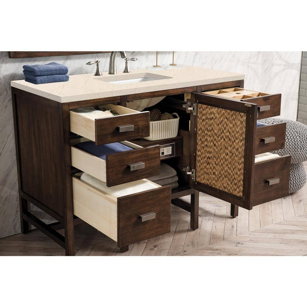 James Martin Vanities Addison 48-inch Bath Vanity in Mid-Century Acacia with Quartz Top