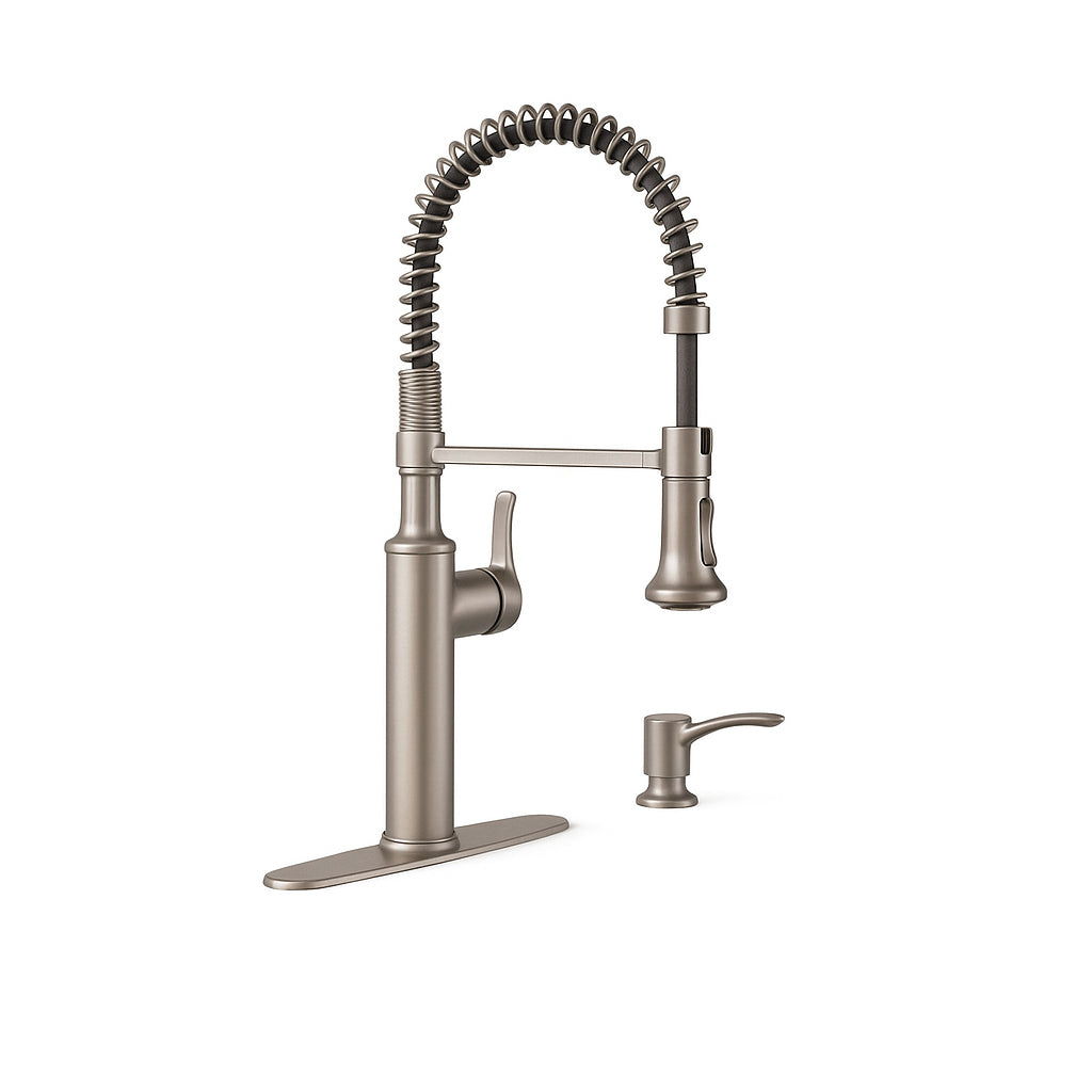 The Kohler Sous Pro-Style Faucet transforms your kitchen into a chef's haven with its industrial-inspired design and professional-grade functionality. Its exposed-spring design adds a touch of modern sophistication, while the dual spray function ensures effortless cleaning. Pair it with a sleek countertop to create a harmonious and stylish workspace. This faucet is not just a tool but a statement piece for luxurious living.