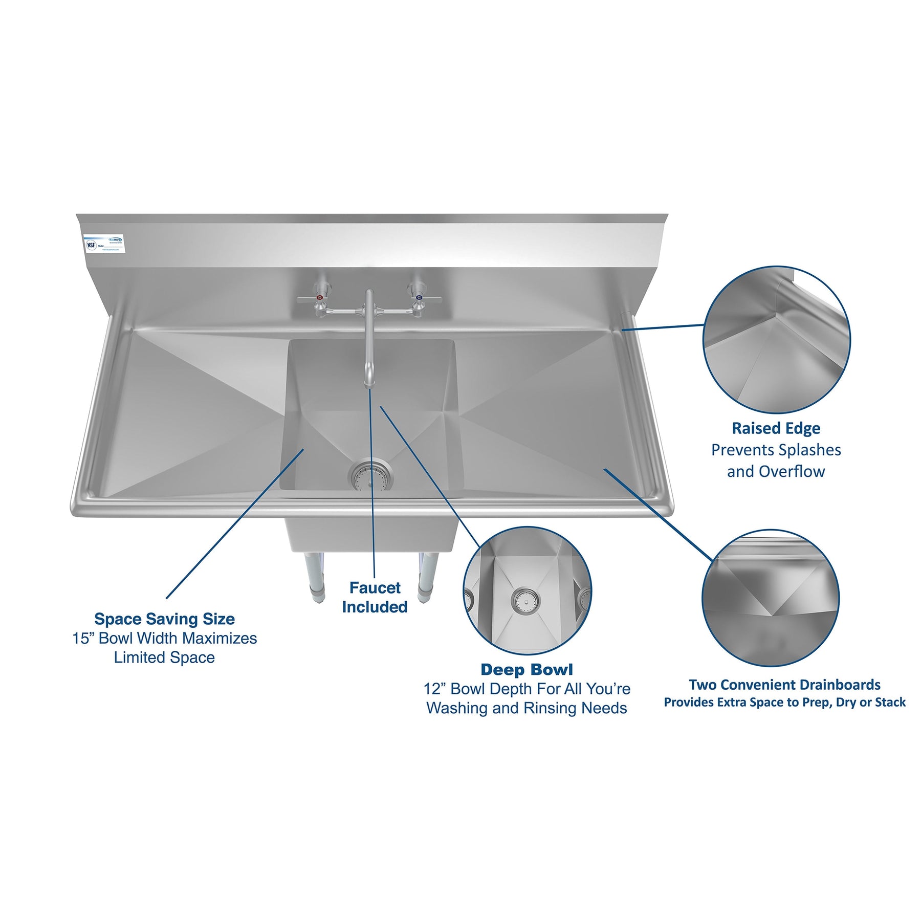• Convenient Drainboards: Twin 15-inch slanted drainboards provide extra space and efficient water drainage.