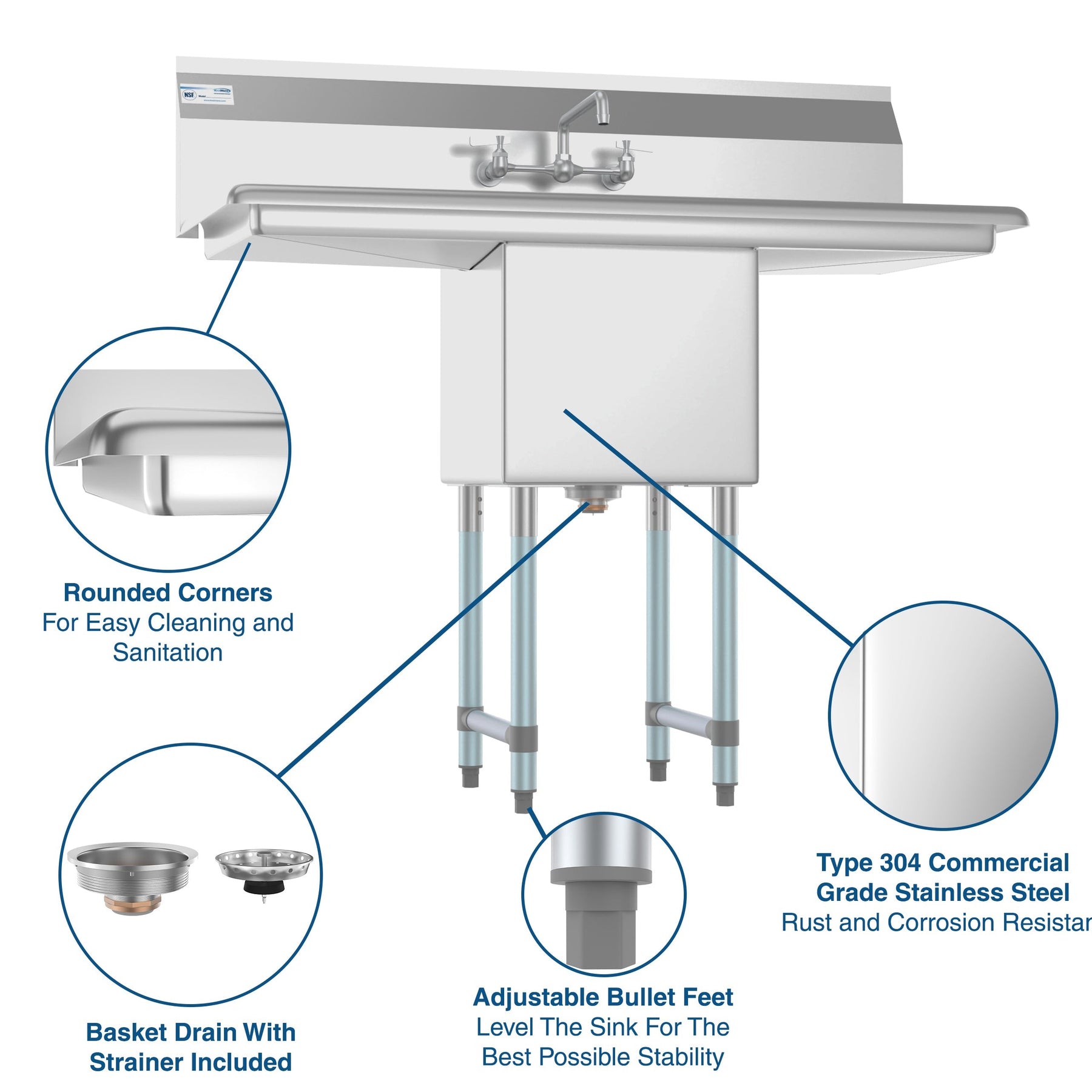 The KoolMore Stainless Steel Freestanding Utility Tub is designed for maximum efficiency in commercial and residential environments. Crafted from heavy-duty 18-gauge stainless steel, this utility tub is resistant to rust and corrosion, making it perfect for high-volume use. With dual drainboards and adjustable bullet feet, it offers convenience and adaptability for any space.