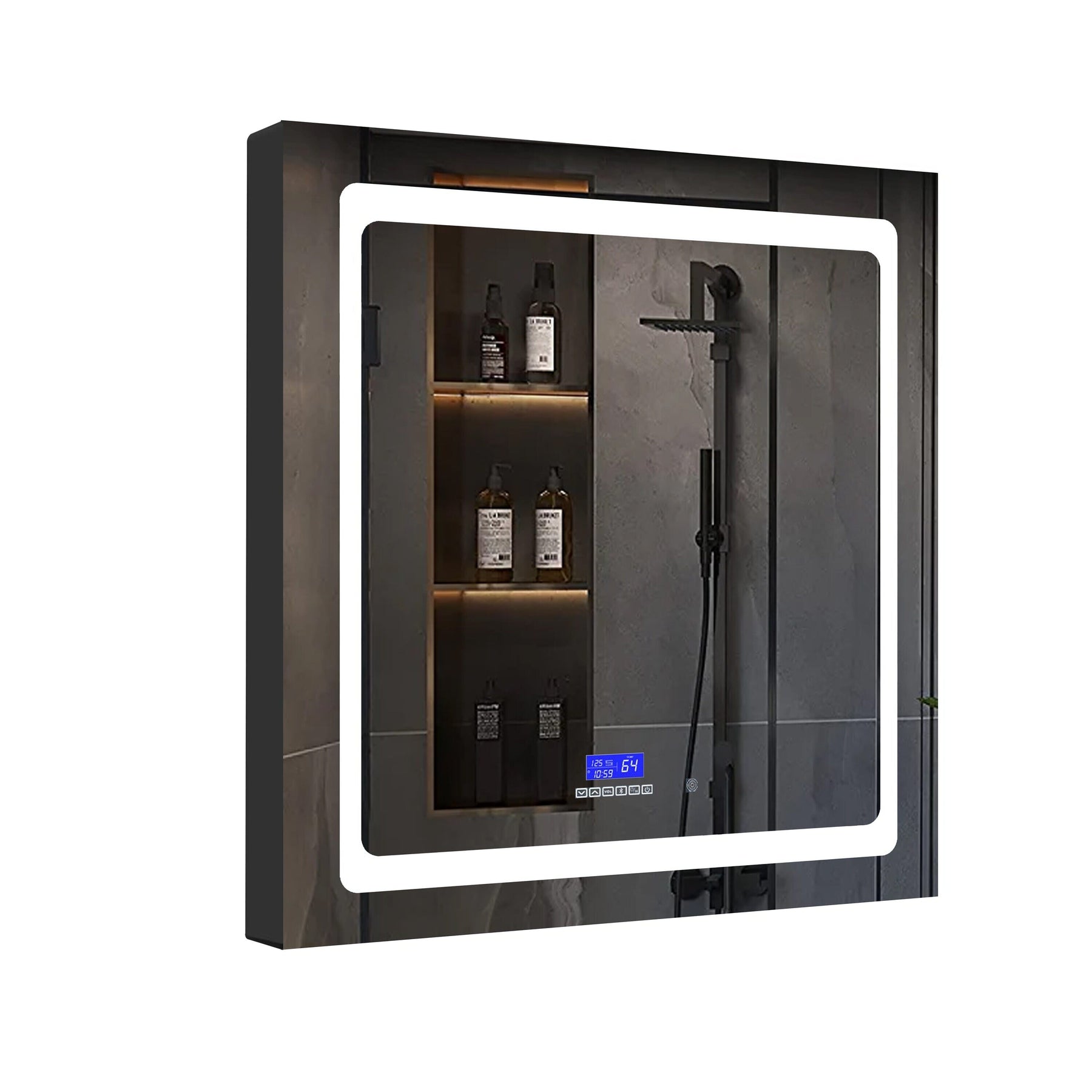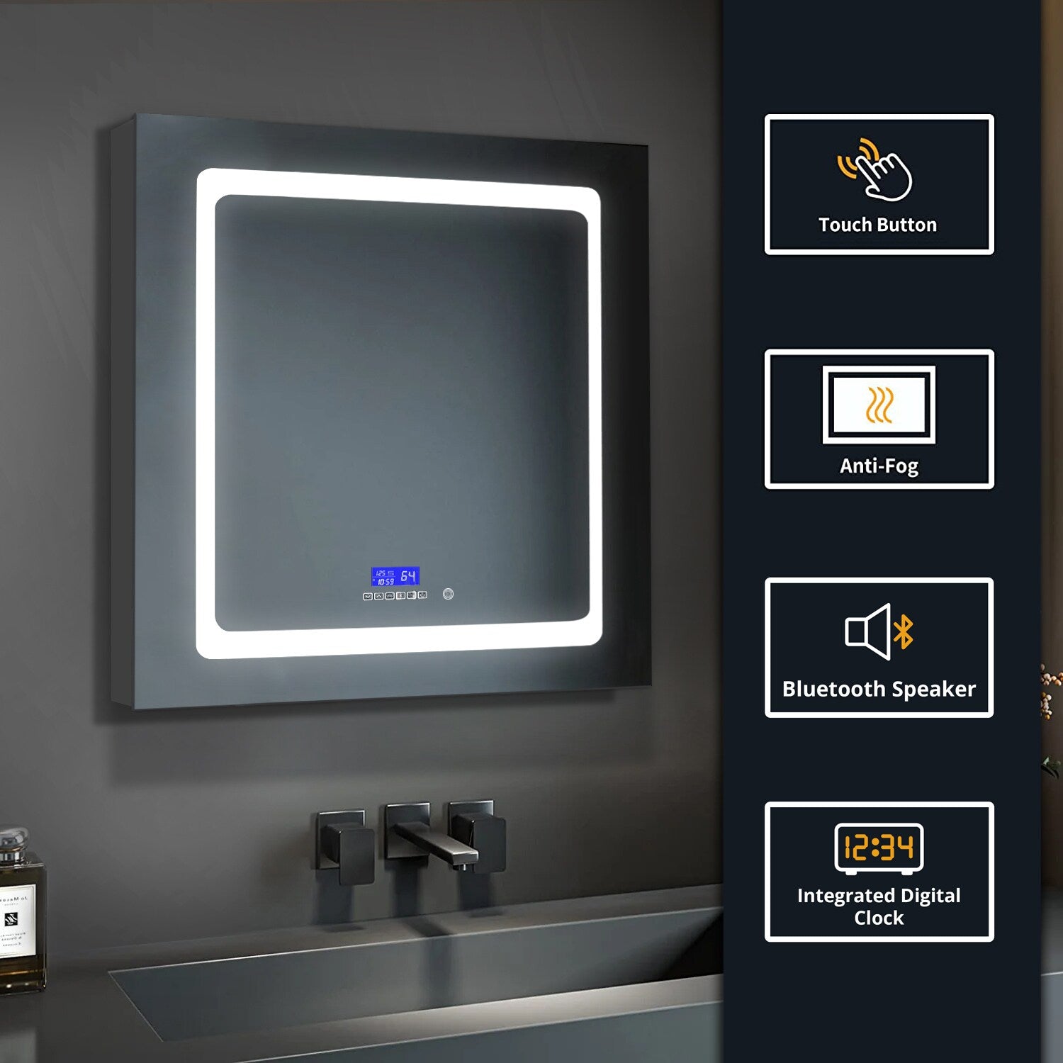 • Fog-Free Mirror: Copper-free mirror with defogging technology for a clear view, even in steamy conditions.