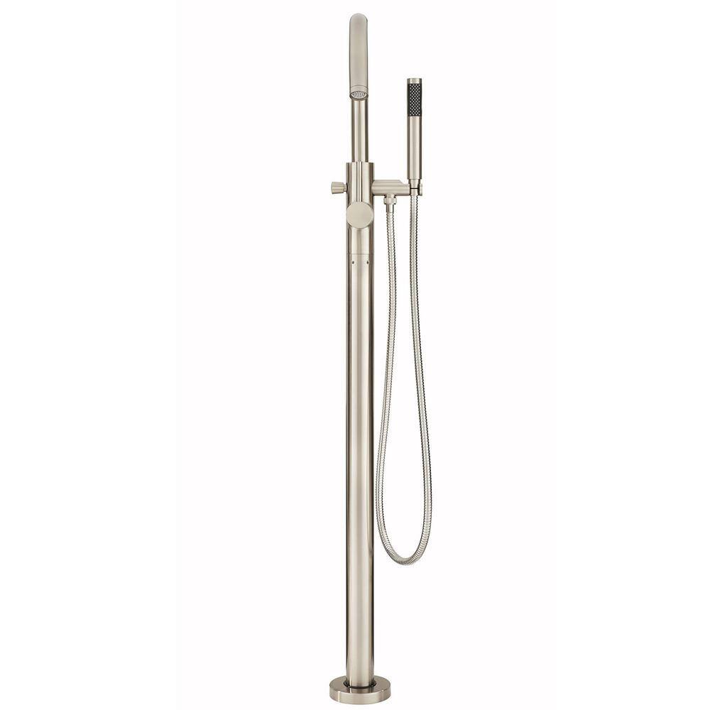 A sleek, modern freestanding tub filler in brushed nickel with a matching hand shower. Built with durable all‑metal construction and ceramic disc valves, it delivers spa-like performance and lasting reliability.