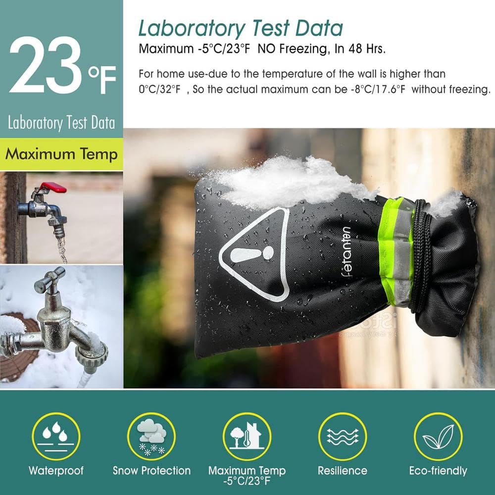 • Advanced Winter Protection: Utilizes aluminized thermal insulation fabric to guard against temperatures as low as -8°F, ensuring outdoor faucets remain functional in extreme cold.