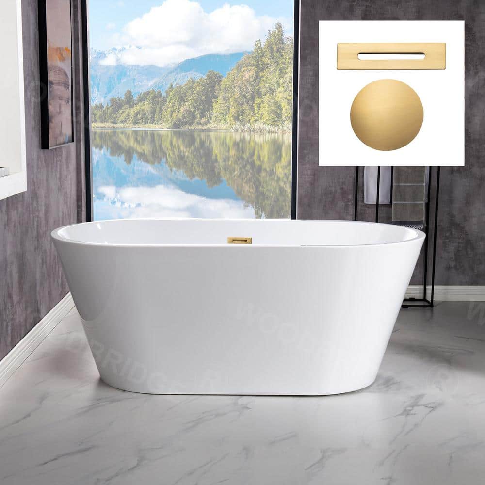 WOODBRIDGE Marseille 54 in. Acrylic FlatBottom Double-Ended Freestanding Bathtub with Brushed Gold Overflow & Drain, White