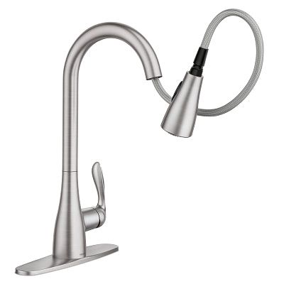 Moen Georgene Spot Resist Stainless 1-Handle Deck Mount Pull-Down Handle/Lever Commercial/Residential Kitchen Faucet (Deck Plate Included)