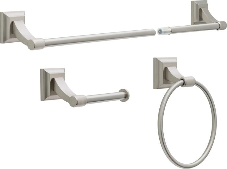 • Accessory set includes a towel bar with a 6-in extender piece which allows you to extend towel bar from 18-in to 24-in, toilet paper holder and towel ring