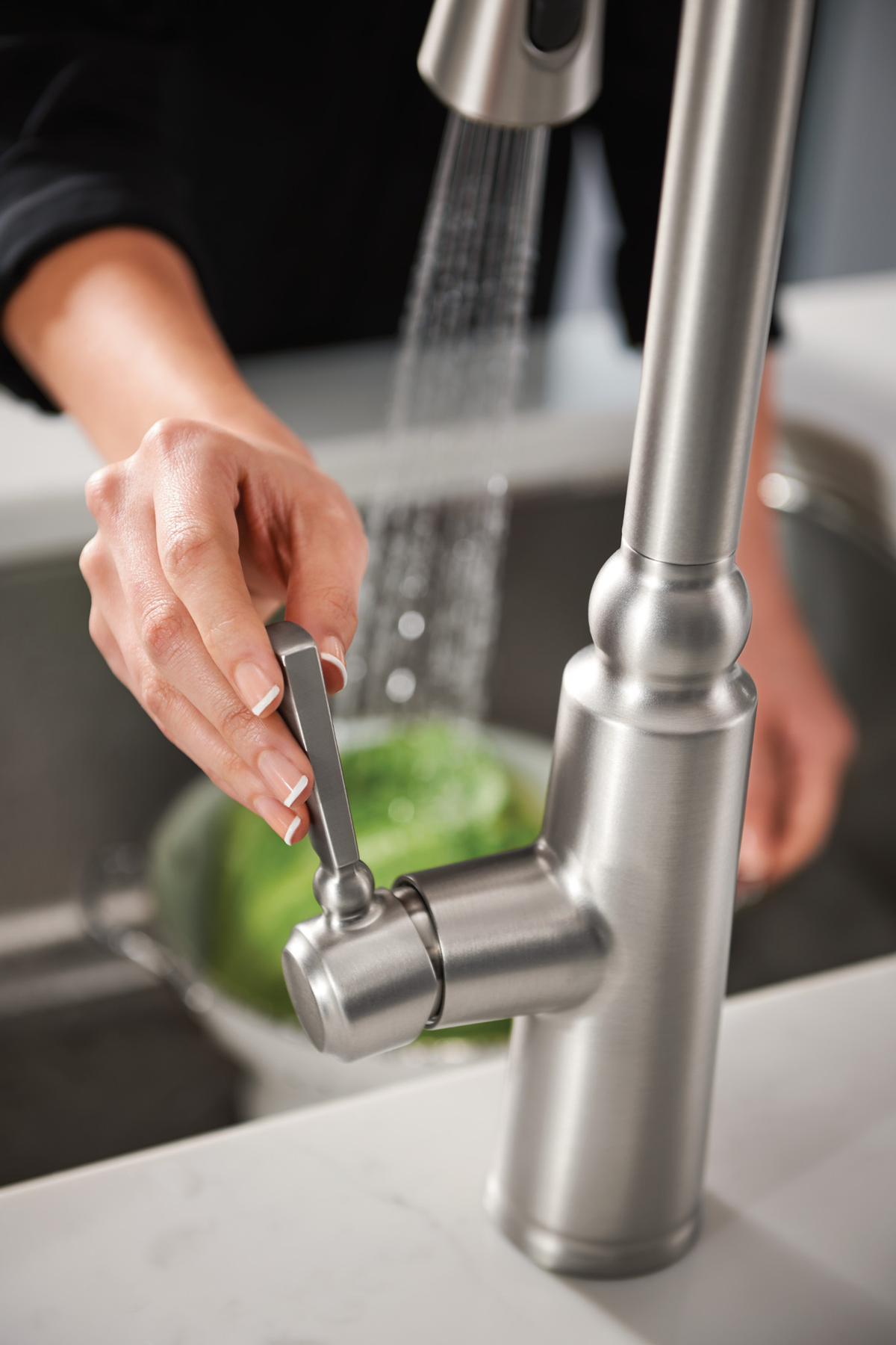 • Reflex pull-down: Smooth hose operation with easy undocking and secure docking