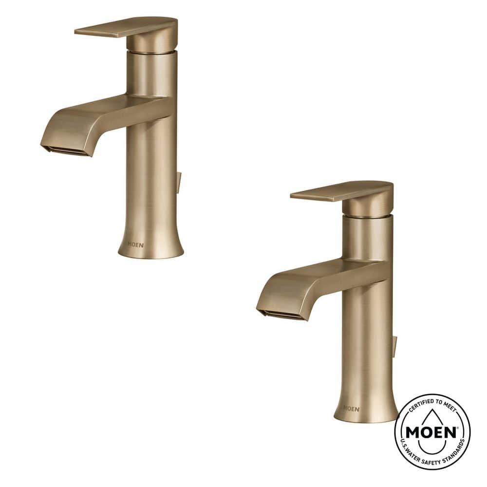 Moen Genta Single Hole Single Handle Bathroom Faucet in Bronzed Gold, with Drain Kit, 2-Pack