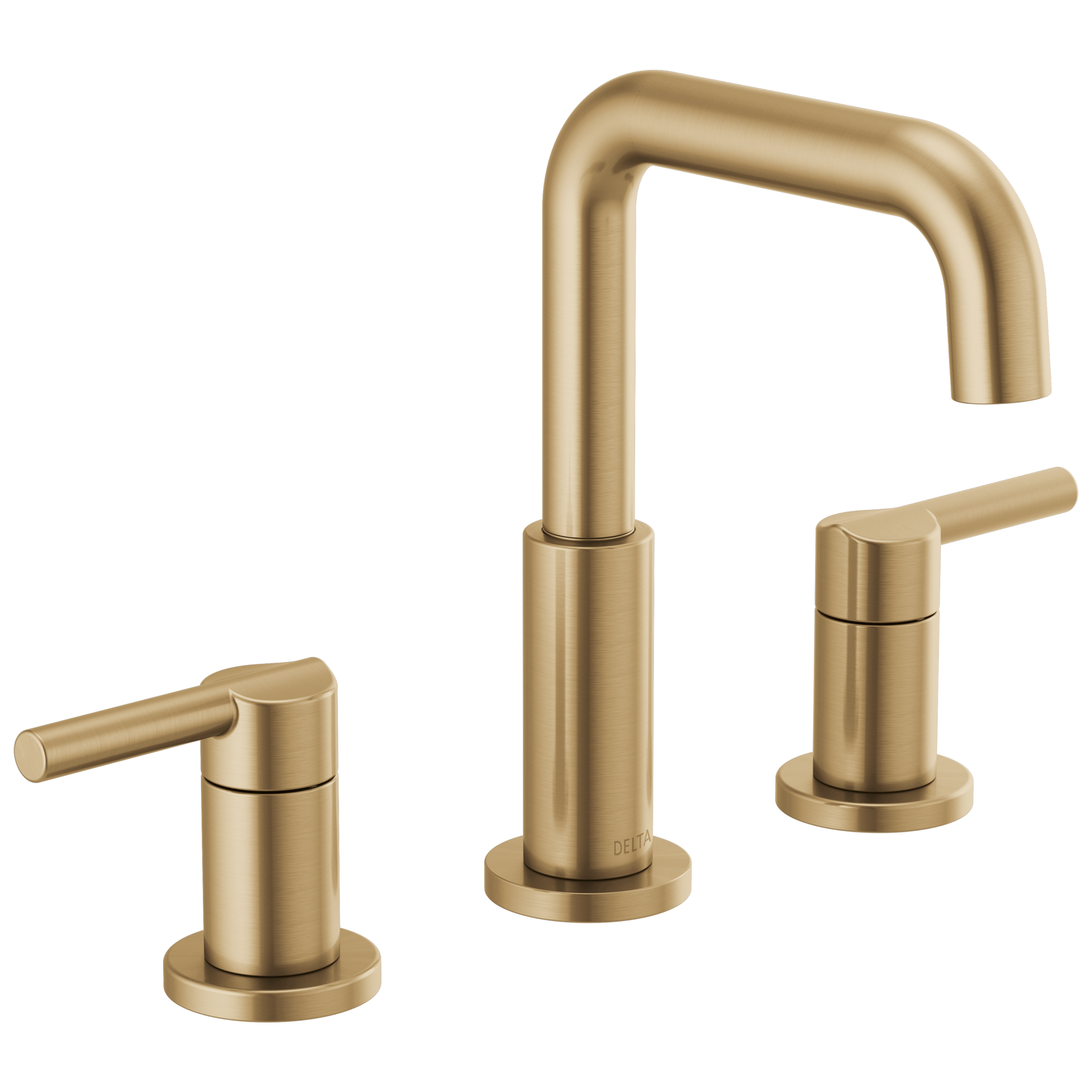 Modern J-spout widespread faucet with two lever handles brings sleek style and dependable performance to any bath. Engineered by Delta, it fits 3-hole 6–16 in. installations and features WaterSense efficiency and a durable, corrosion-resistant finish.