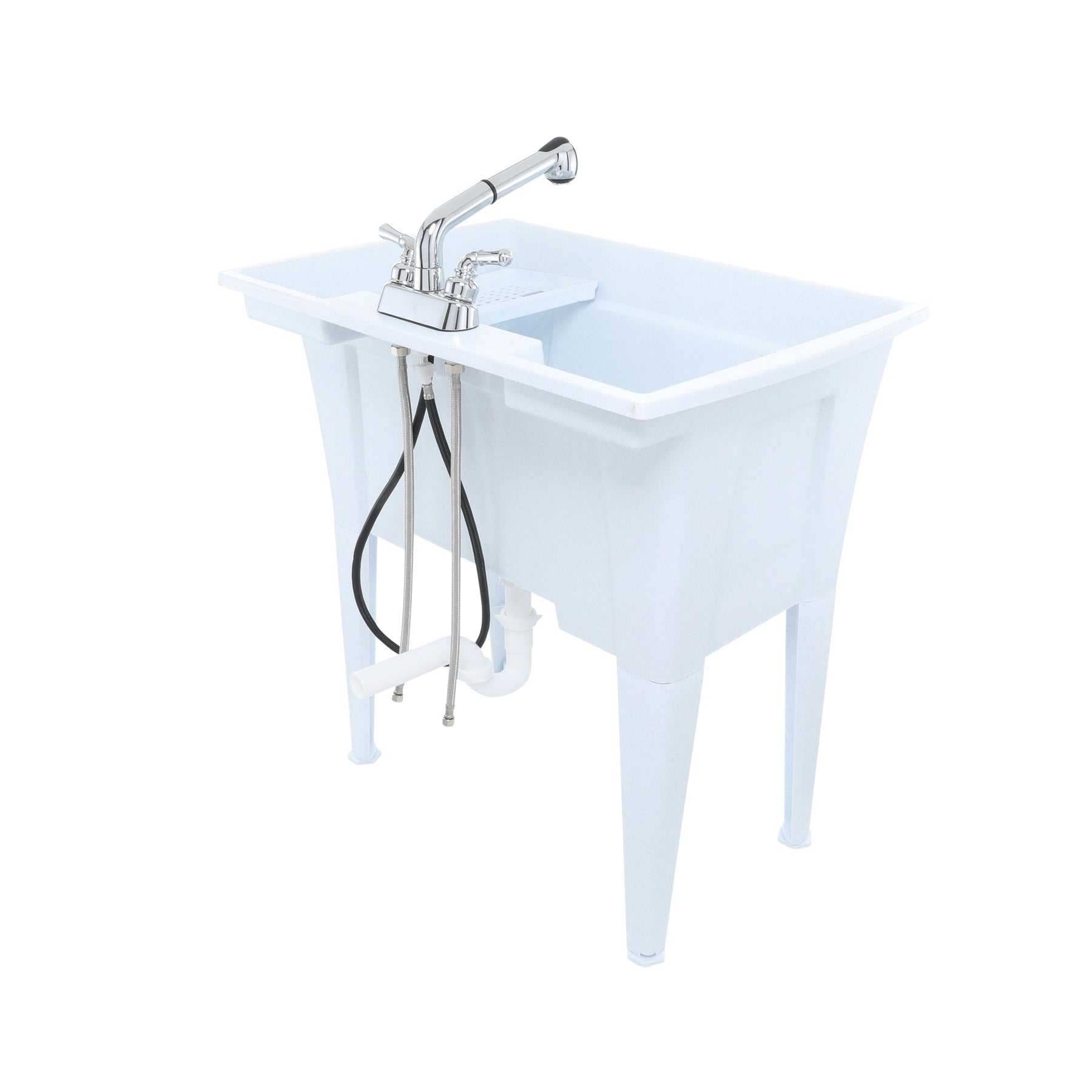 RuggedTub 32.25-in x 22-in White Freestanding Utility Tub with Faucet