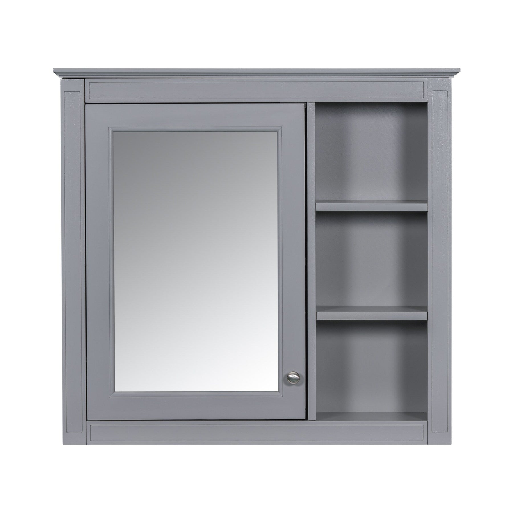 Transform your bathroom space with the Siavonce Grey Medicine Cabinet—an exquisite blend of form and function. Its sleek mirrored doors offer a refreshing design element, reflecting light to create an illusion of a larger, more open space. This cabinet, with its impeccably organized interior, allows you to stylishly store essentials, making it the perfect choice for modern, efficient living. Accentuate it with spa-like accessories for an indulgent, luxurious feel that makes every day a special occasion.