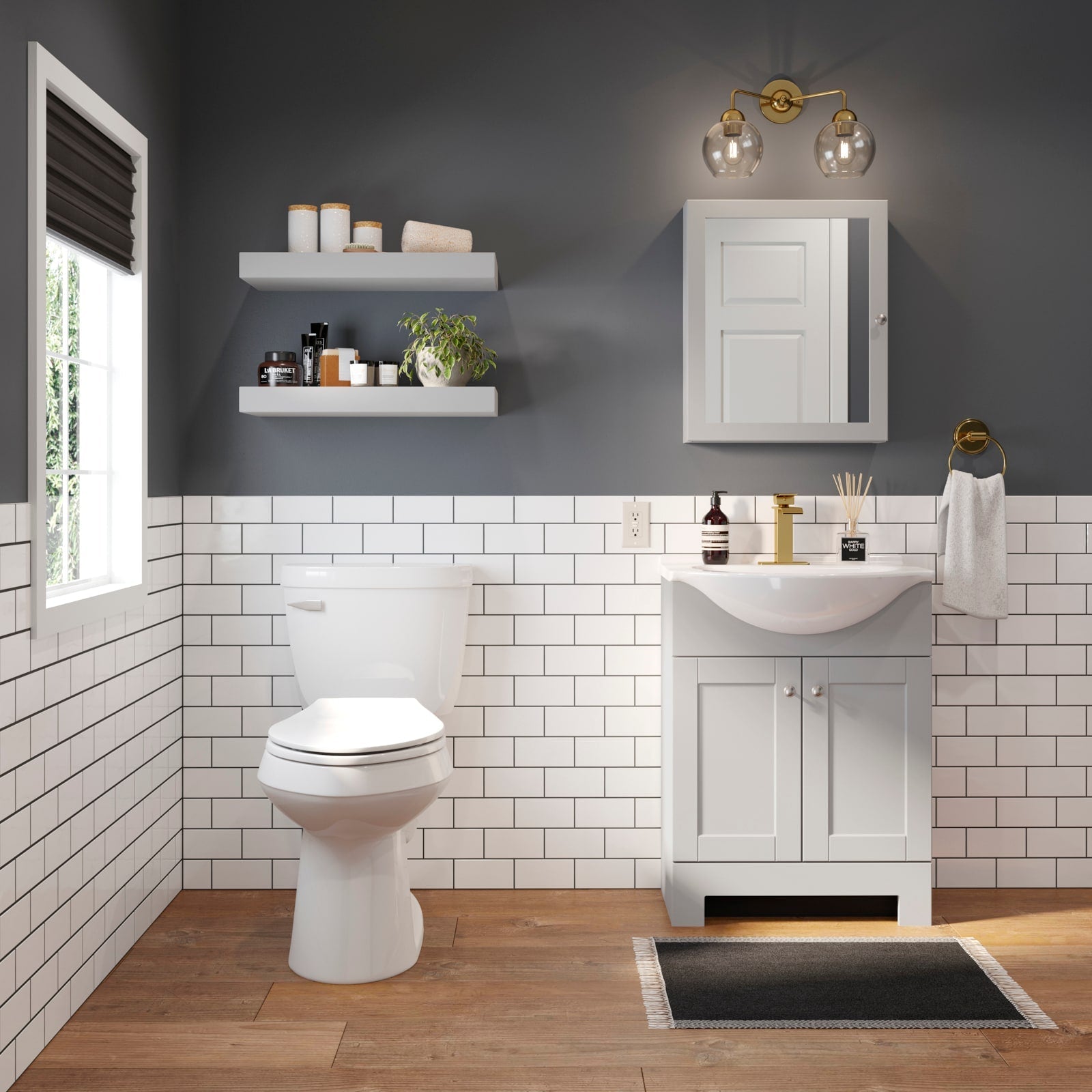 • Compact and stylish: Gray finish complements a variety of bathroom decors.