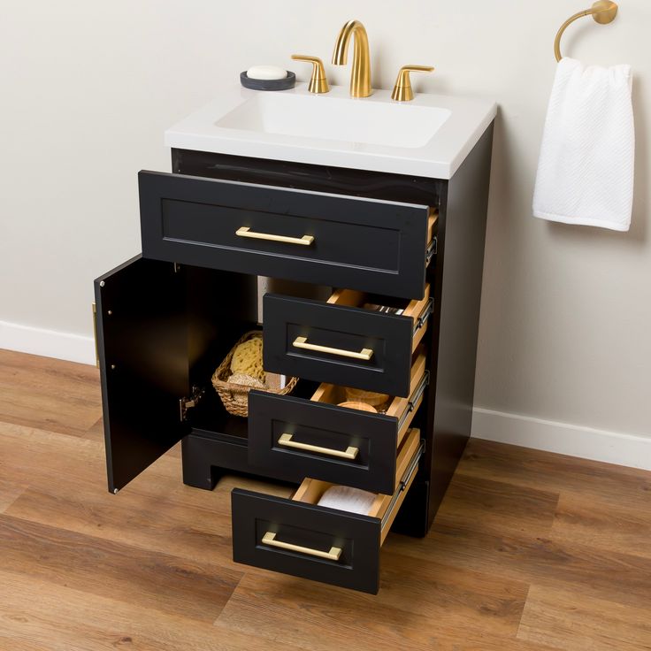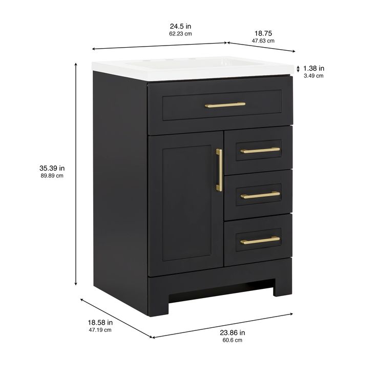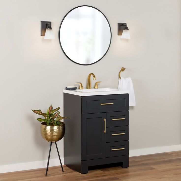 With the Style Selections Cauley 24-in Black Single Sink Bathroom Vanity, you can elevate your bathroom with a sleek and modern touch. The black finish adds a stylish element, while the white cultured marble top provides a durable and elegant surface. Perfect for any bathroom renovation.
