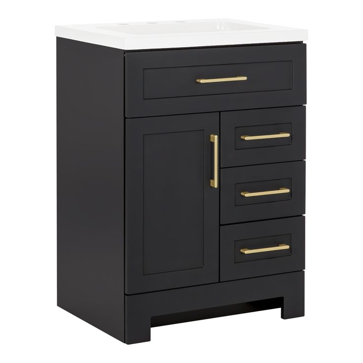Style Selections Cauley 24-in Black Single Sink Bathroom Vanity with White Cultured Marble Top