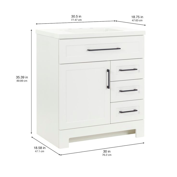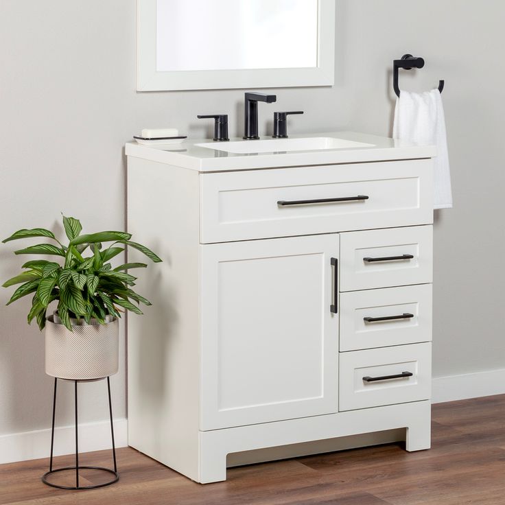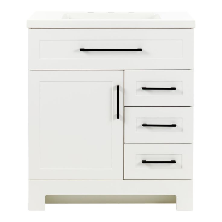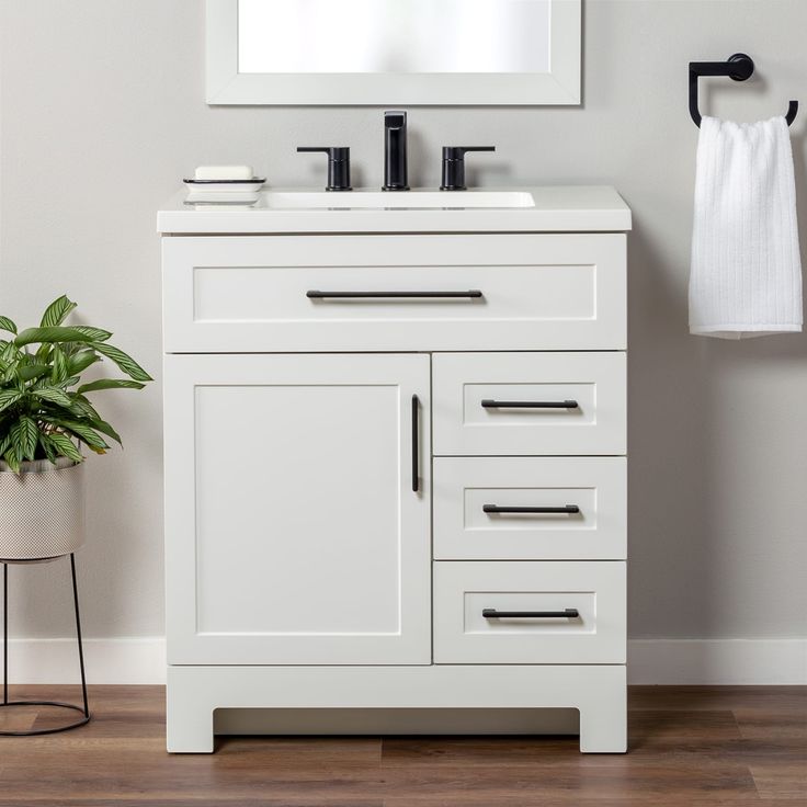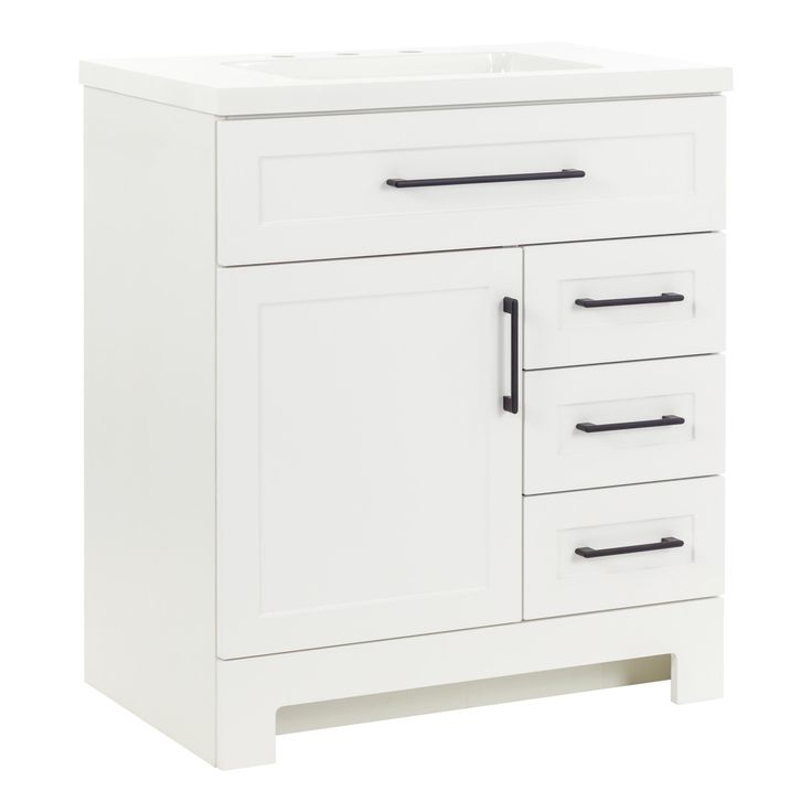 The Style Selections Cauley 30-in White Single Sink Bathroom Vanity is the perfect addition to any bathroom. Its white finish and cultured marble top add a touch of elegance, while the spacious sink provides convenience and functionality. Made with high-quality materials, this vanity is both durable and stylish.