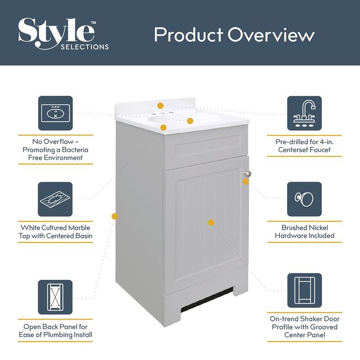 Experience elegance and functionality with the Style Selections Ellenbee 18-in Gray Single Sink Bathroom Vanity. The white cultured marble top adds a touch of luxury while providing a durable surface for everyday use. This vanity is perfect for small spaces, making it a practical and stylish addition to any bathroom.