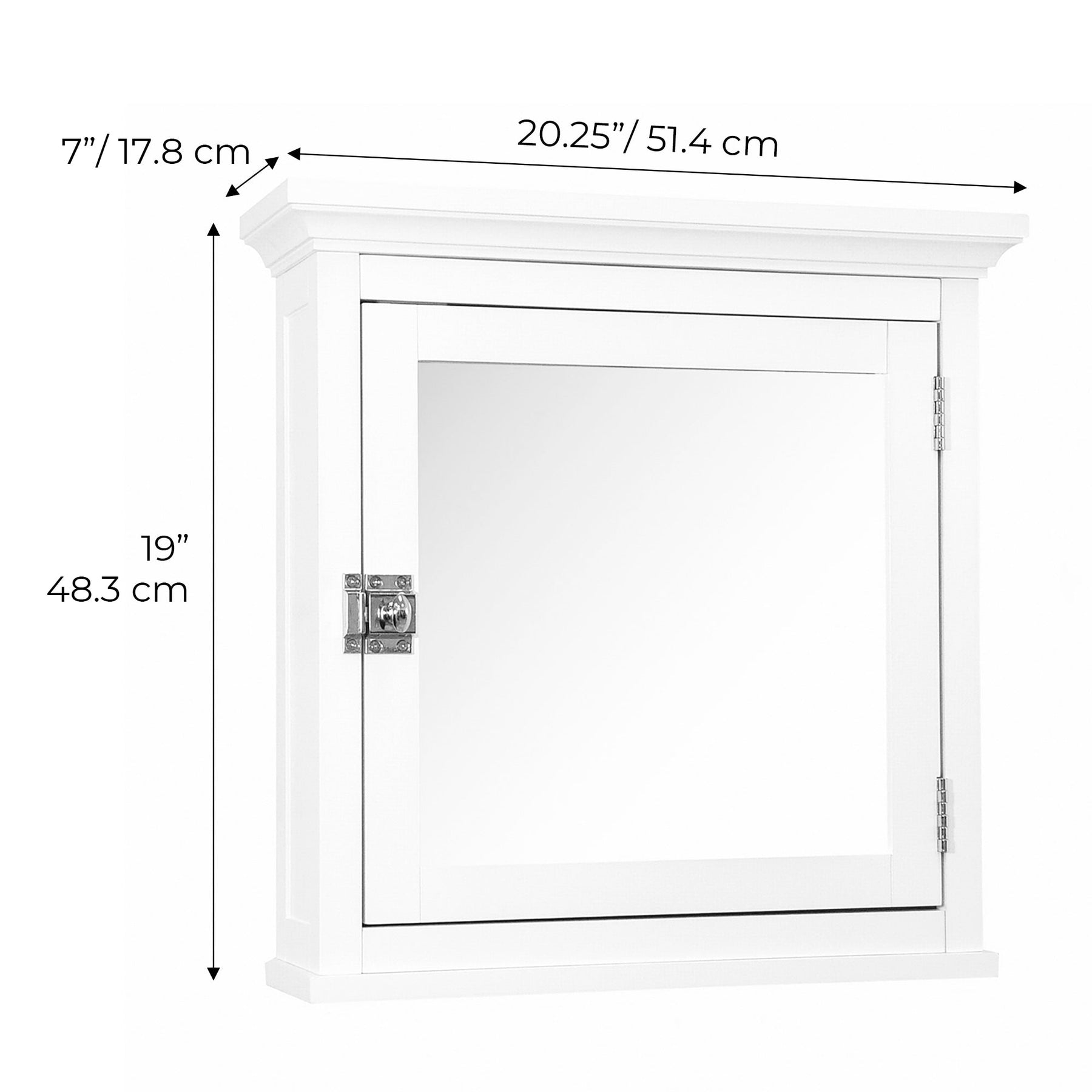 • Secure Storage: Mirror door with latch safely stores medications and essentials out of children's reach.