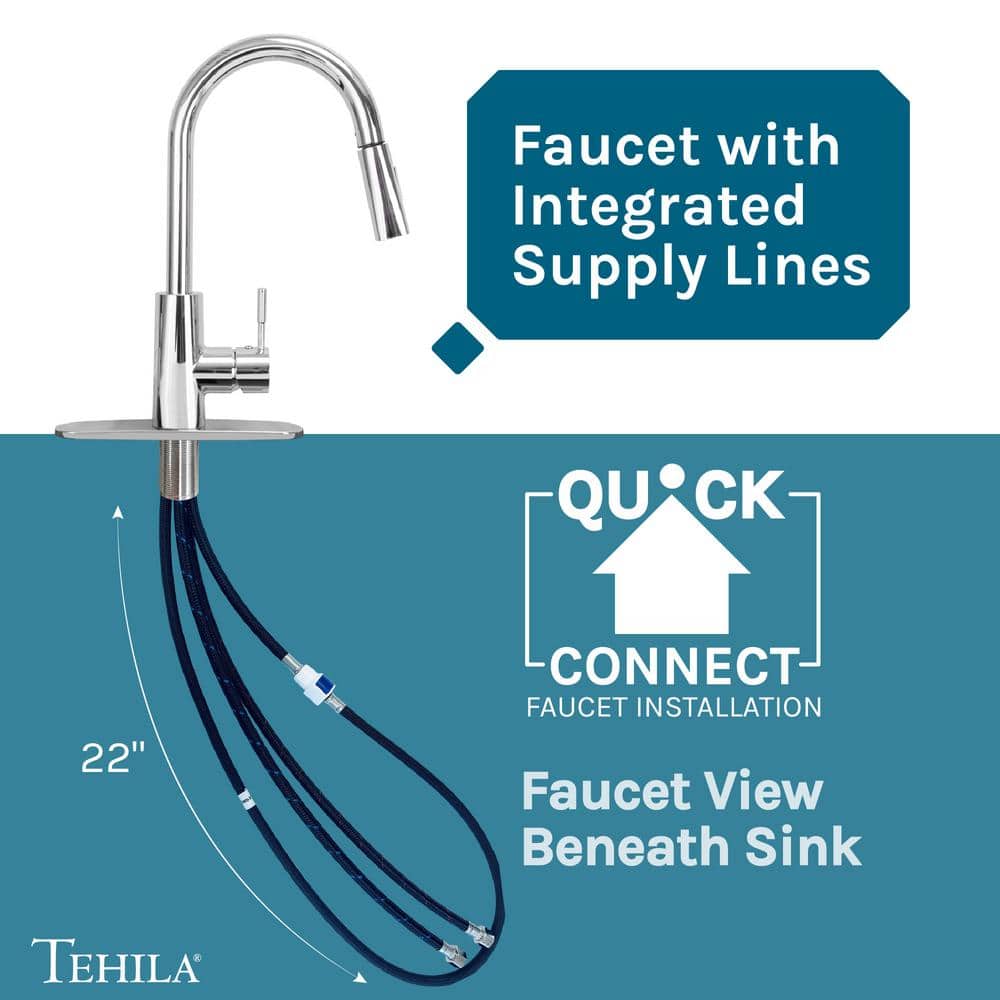 • Smart Functionality: Includes a stainless steel, high-arc pull-down faucet with a powerful spray and 360-degree swivel capability.