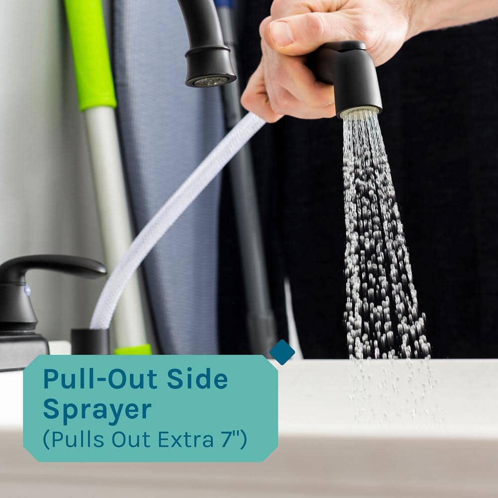 • Modern Design: Black matte finish high-arc faucet adds a sleek touch.