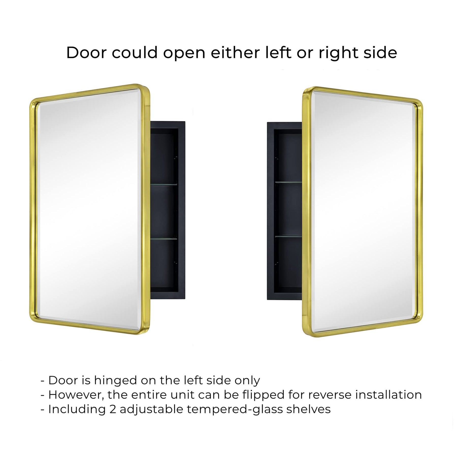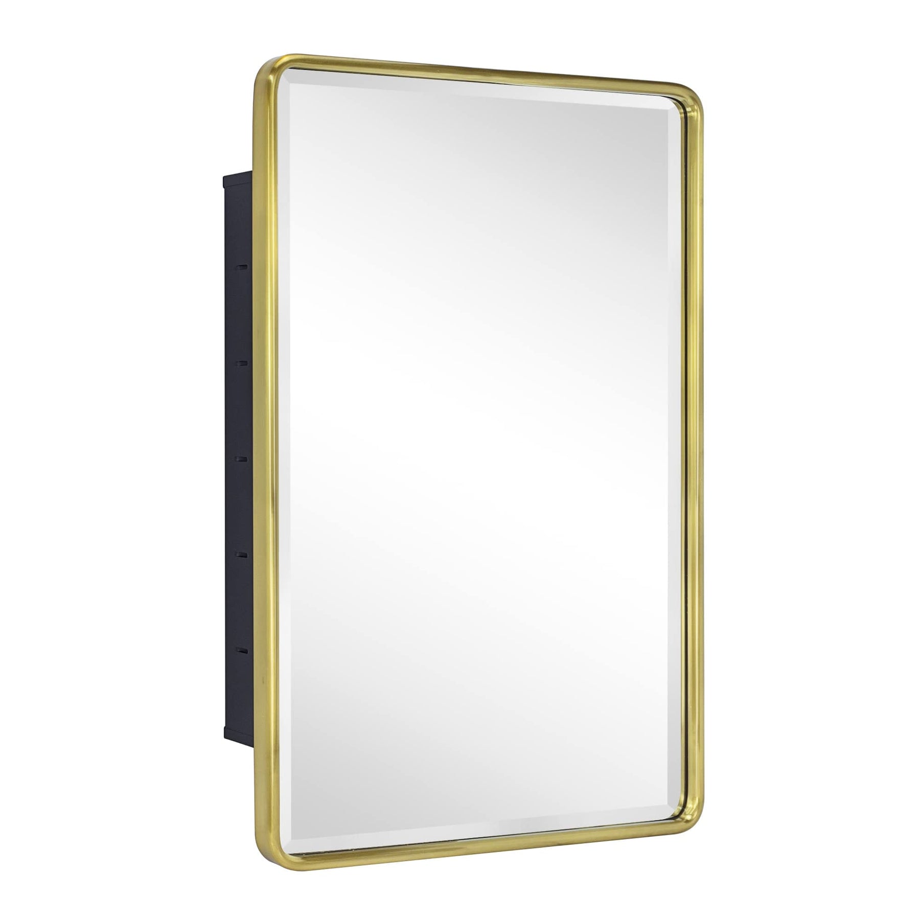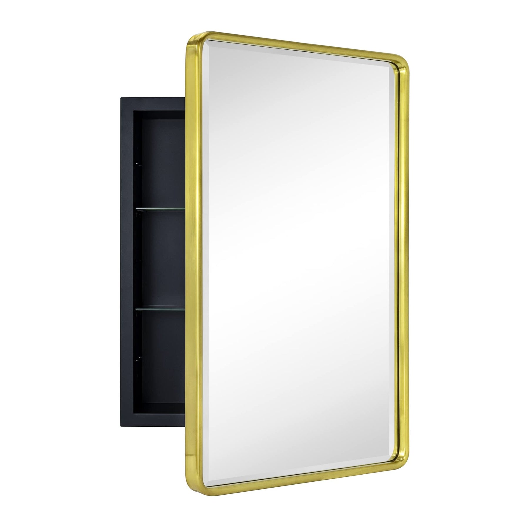 TEHOME 16-in x 24-in Recessed Mount Brushed Gold Mirrored Medicine Cabinet