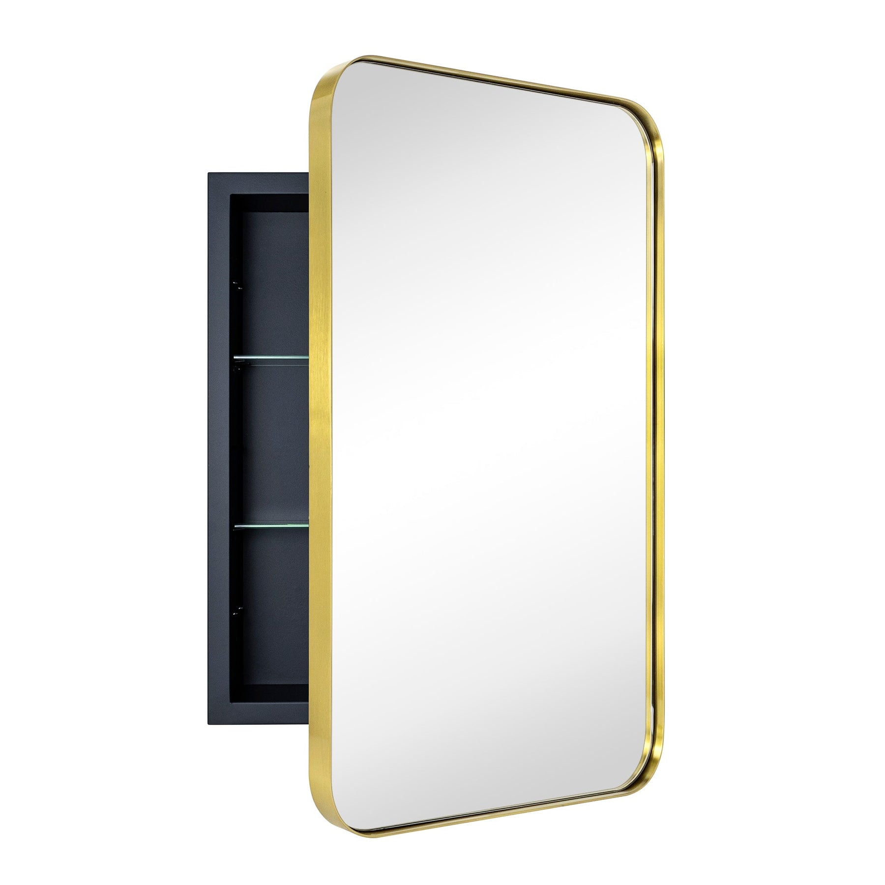 TEHOME 16-in x 24-in Recessed Mount Brushed Gold Mirrored Medicine Cabinet